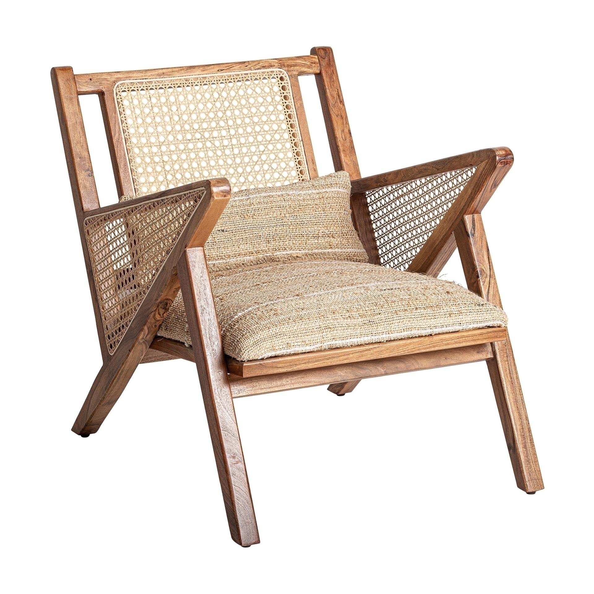 Кресло Hickory, натурального цвета, стиль бохо. Изготовлен из древесины ДМ в сочетании с хлопком и джутом. Съемное изделие.