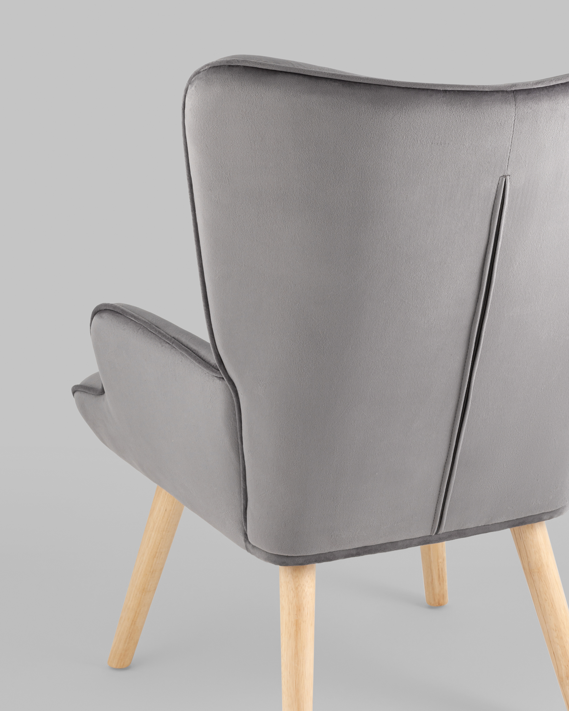 Кресло Хью серый обивка велюр с ножки массив дерева