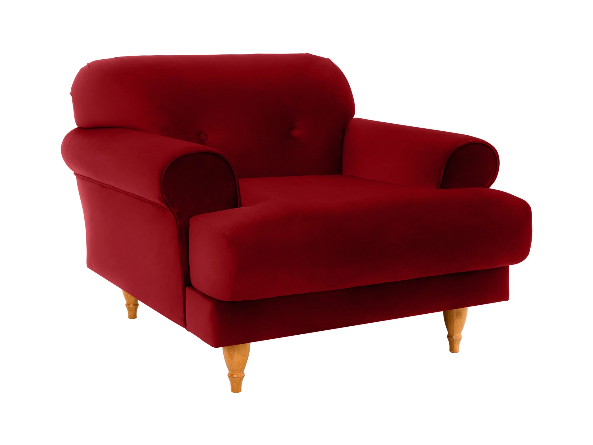 Мягкое кресло Italia на деревянных ножках. Спинка симметрично декорирована пуговицами. Дизайн сочетает в себе черты классики, модерна и ретростиля. Резные деревянные ножки приподнимают кресло над полом, создавая просвет и наполняя помещение дополнительным воздухом. Что дает возможность визуально увеличить пространство. Невысокая спинка, закруглённые объёмные подлокотники, широкое сиденье создают эргономичную архитектуру кресла. Модель создана с учетом анатомических особенностей, поэтому в кресле Italia можно максимально расслабиться и ощутить настоящее умиротворение.|Надёжность и долговечность изделия обеспечивает комбинированный каркас из деревянного бруса, МДФ и фанеры. Упругость сиденья и спинки поддерживают пенополиуретан и синтепон. У этих материалов уникальная плотная текстура, сочетающая мягкость и прочность. Обивка из 100 % полиэстера не склонна к образованию пиллинга, затяжек, отлично поддается чистке. Цвет – на ваш выбор. Эффектное кресло Italia станет любимцем в доме, стоит только оказаться в его нежных объятиях.