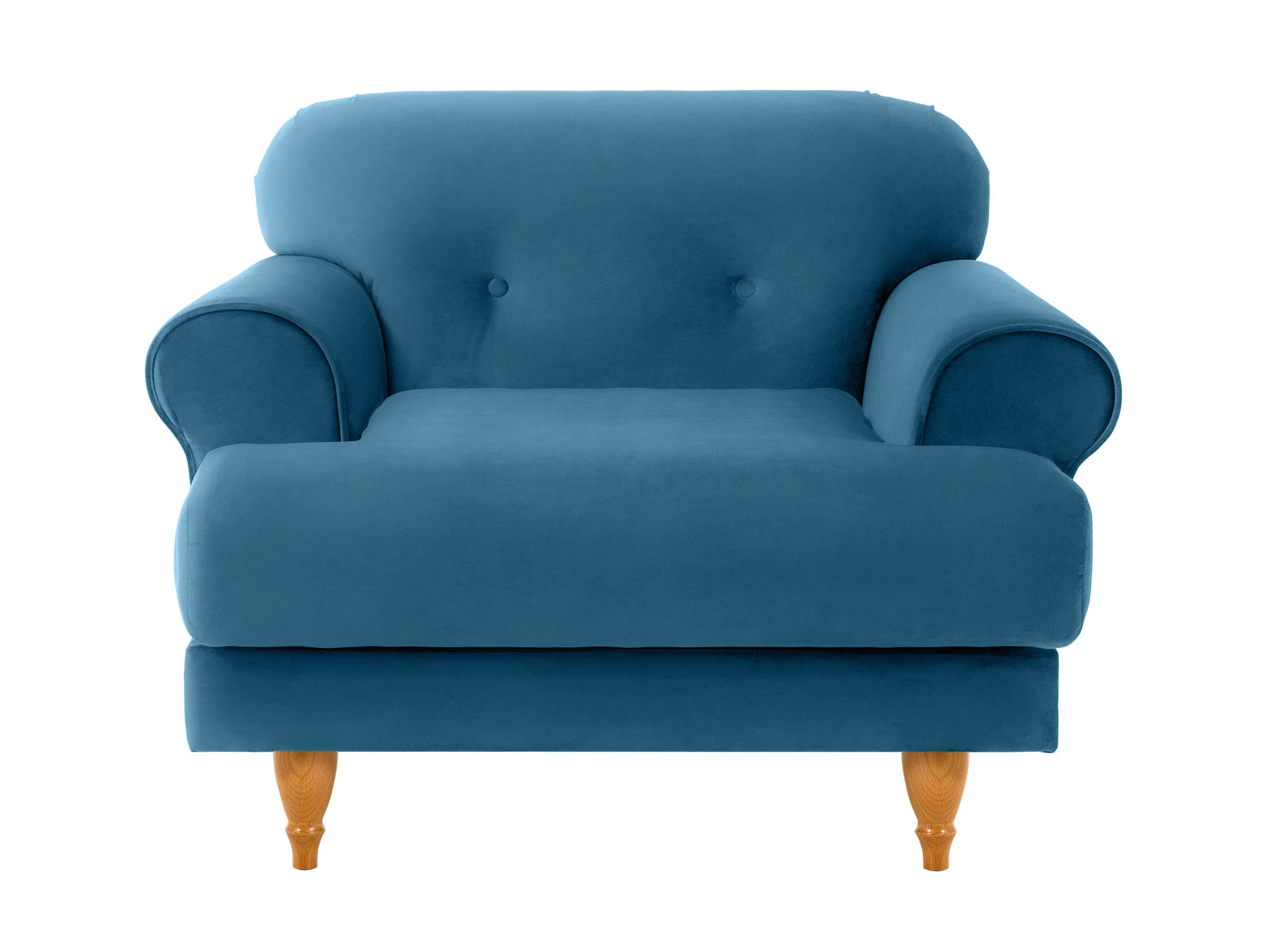Мягкое кресло Italia на деревянных ножках. Спинка симметрично декорирована пуговицами. Дизайн сочетает в себе черты классики, модерна и ретростиля. Резные деревянные ножки приподнимают кресло над полом, создавая просвет и наполняя помещение дополнительным воздухом. Что дает возможность визуально увеличить пространство. Невысокая спинка, закруглённые объёмные подлокотники, широкое сиденье создают эргономичную архитектуру кресла. Модель создана с учетом анатомических особенностей, поэтому в кресле Italia можно максимально расслабиться и ощутить настоящее умиротворение.|Надёжность и долговечность изделия обеспечивает комбинированный каркас из деревянного бруса, МДФ и фанеры. Упругость сиденья и спинки поддерживают пенополиуретан и синтепон. У этих материалов уникальная плотная текстура, сочетающая мягкость и прочность. Обивка из 100 % полиэстера не склонна к образованию пиллинга, затяжек, отлично поддается чистке. Цвет – на ваш выбор. Эффектное кресло Italia станет любимцем в доме, стоит только оказаться в его нежных объятиях.