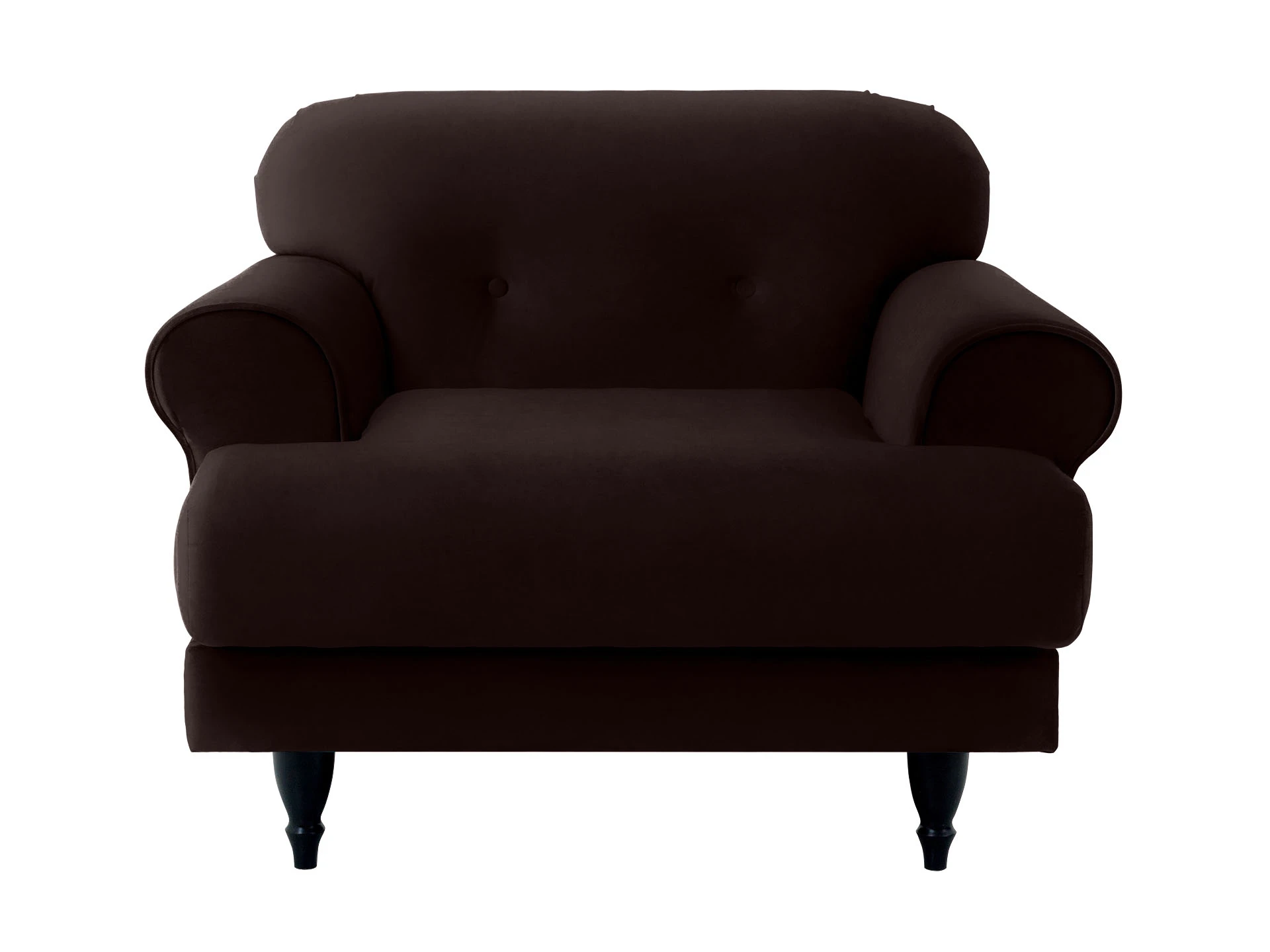 Мягкое кресло Italia на деревянных ножках. Спинка симметрично декорирована пуговицами. Дизайн сочетает в себе черты классики, модерна и ретростиля. Резные деревянные ножки приподнимают кресло над полом, создавая просвет и наполняя помещение дополнительным воздухом. Что дает возможность визуально увеличить пространство. Невысокая спинка, закруглённые объёмные подлокотники, широкое сиденье создают эргономичную архитектуру кресла. Модель создана с учетом анатомических особенностей, поэтому в кресле Italia можно максимально расслабиться и ощутить настоящее умиротворение.|Надёжность и долговечность изделия обеспечивает комбинированный каркас из деревянного бруса, МДФ и фанеры. Упругость сиденья и спинки поддерживают пенополиуретан и синтепон. У этих материалов уникальная плотная текстура, сочетающая мягкость и прочность. Обивка из 100 % полиэстера не склонна к образованию пиллинга, затяжек, отлично поддается чистке. Цвет – на ваш выбор. Эффектное кресло Italia станет любимцем в доме, стоит только оказаться в его нежных объятиях.
