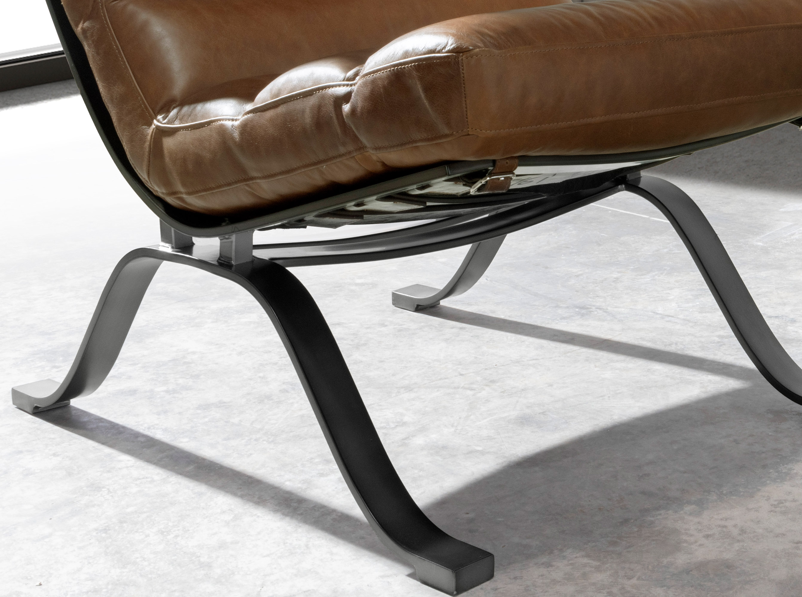 Кресло современного дизайна с сиденьем и спинкой, обитыми темно-коричневой воловьей кожей. Благодаря своему стилю и ножкам из нержавеющей стали с металлическим эффектом это кресло представляет собой идеальное сочетание дизайна и комфорта.