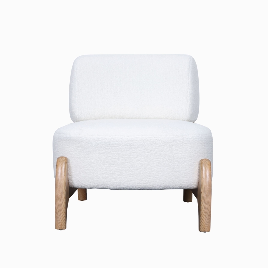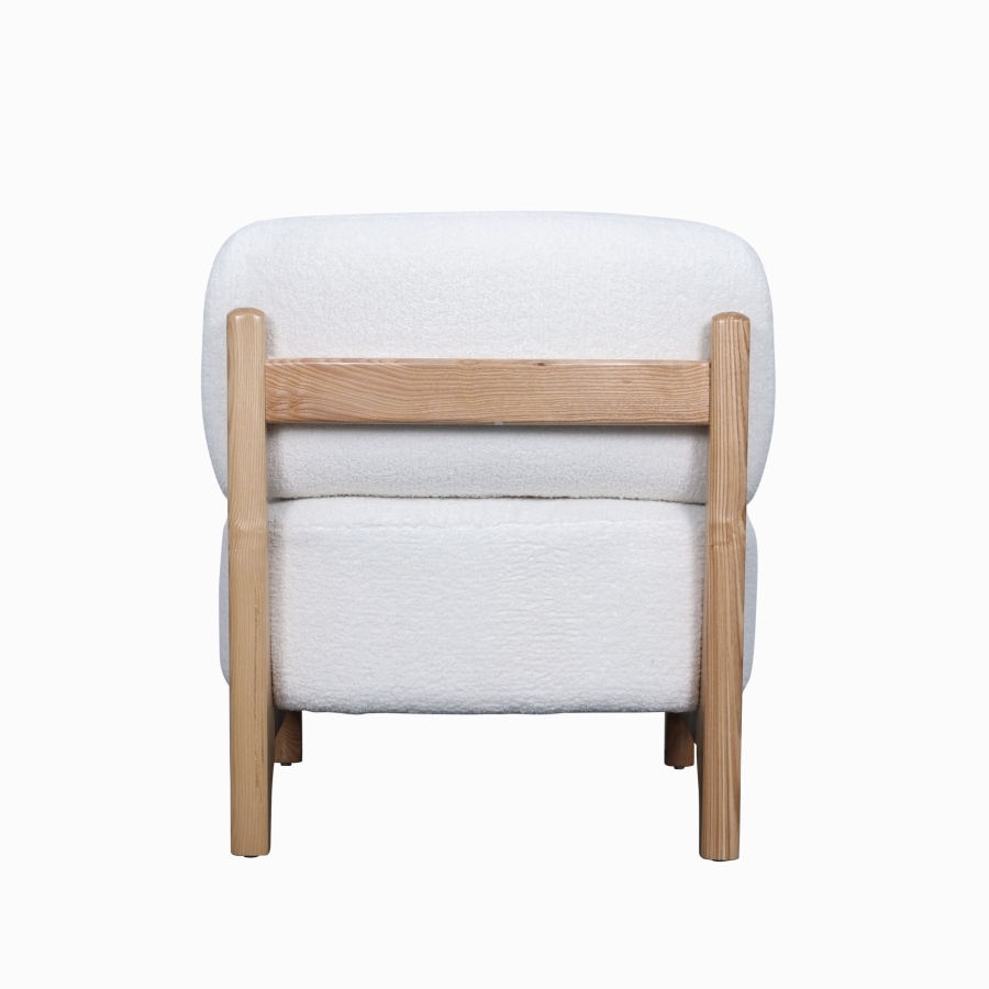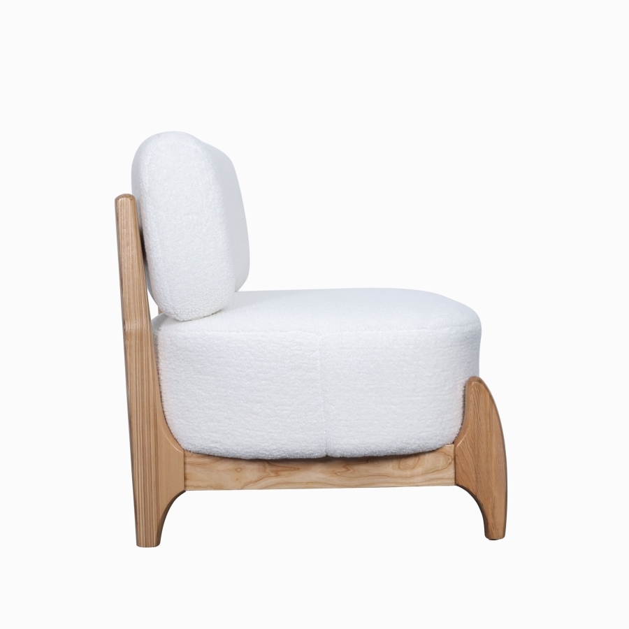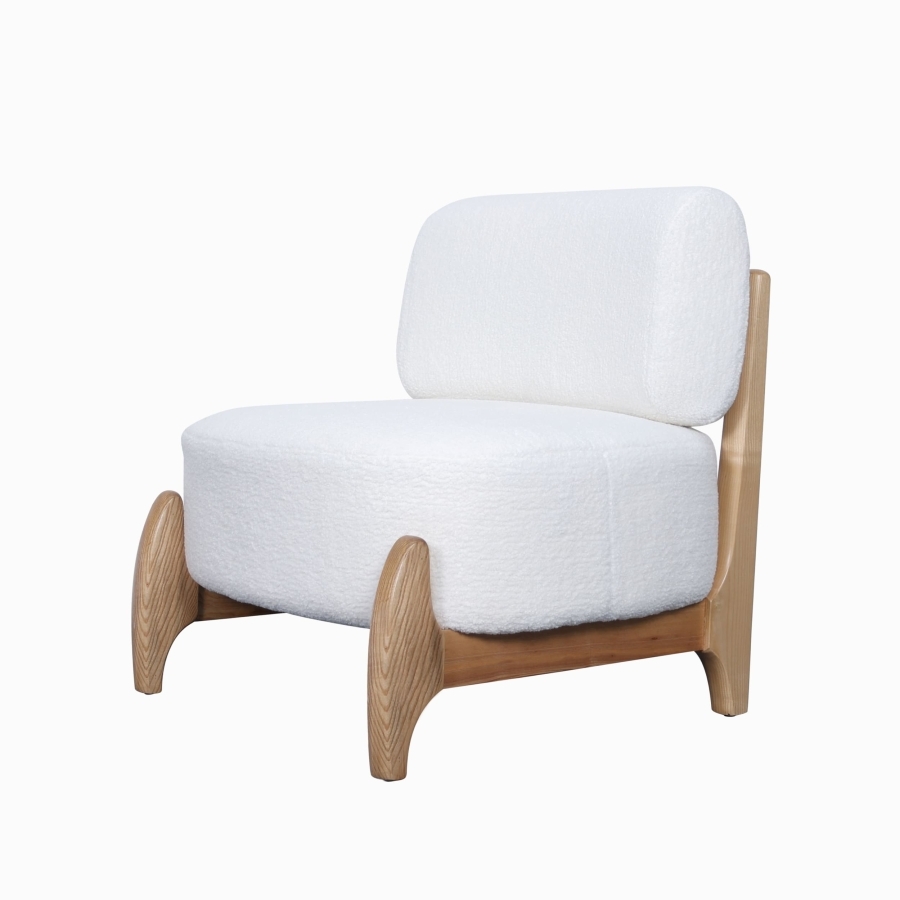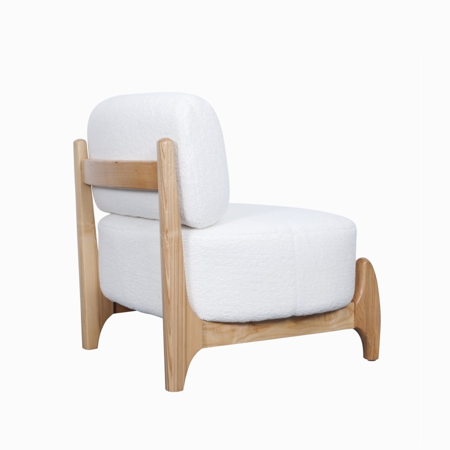 Оригинальный деревянный каркас с изогнутыми элементами придает креслу индивидуальность и устойчивость.