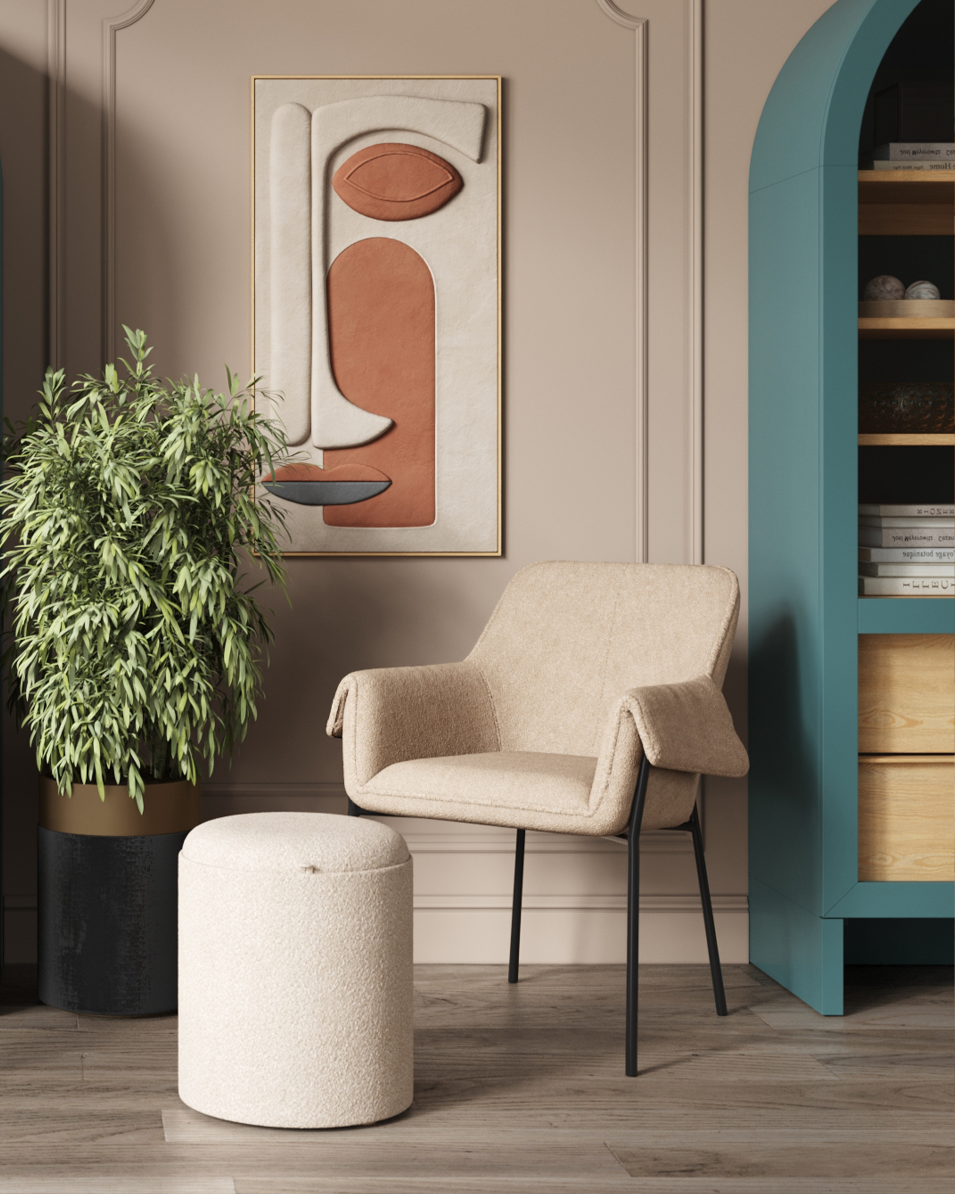 Кресло с подлокотниками Бесс альпака бежевый ножки металл черные