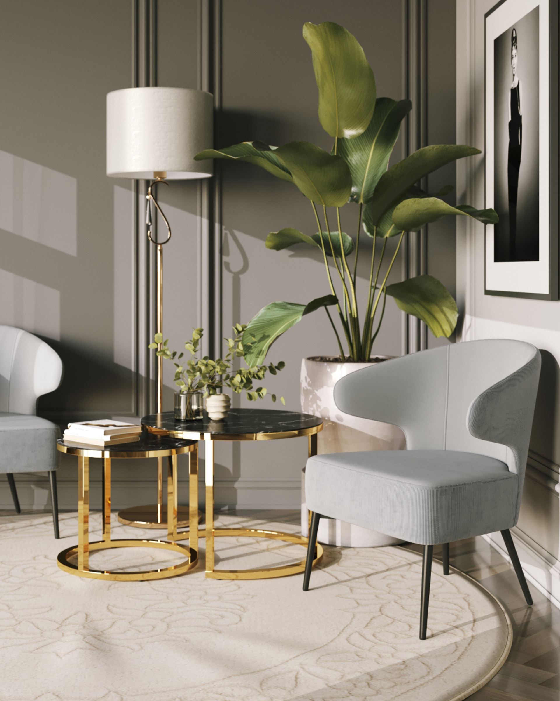 Кресло лаунж Royal Stripes велюр серый