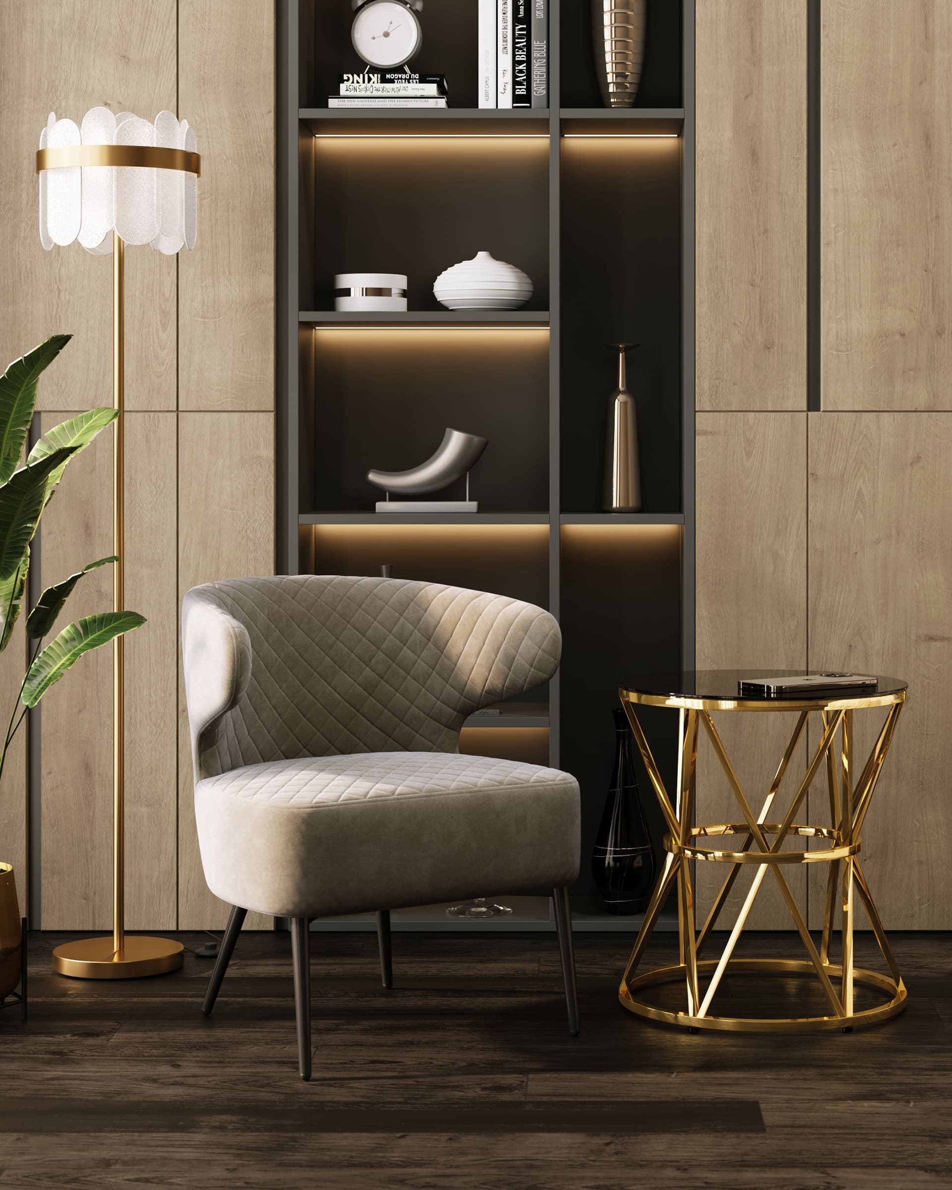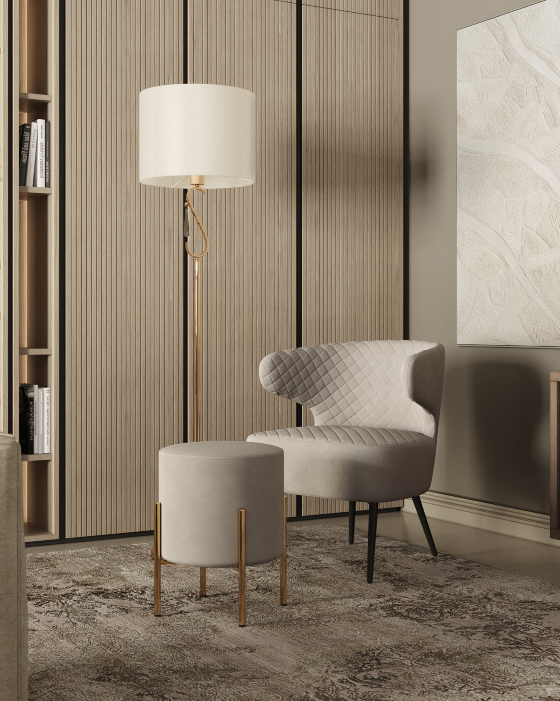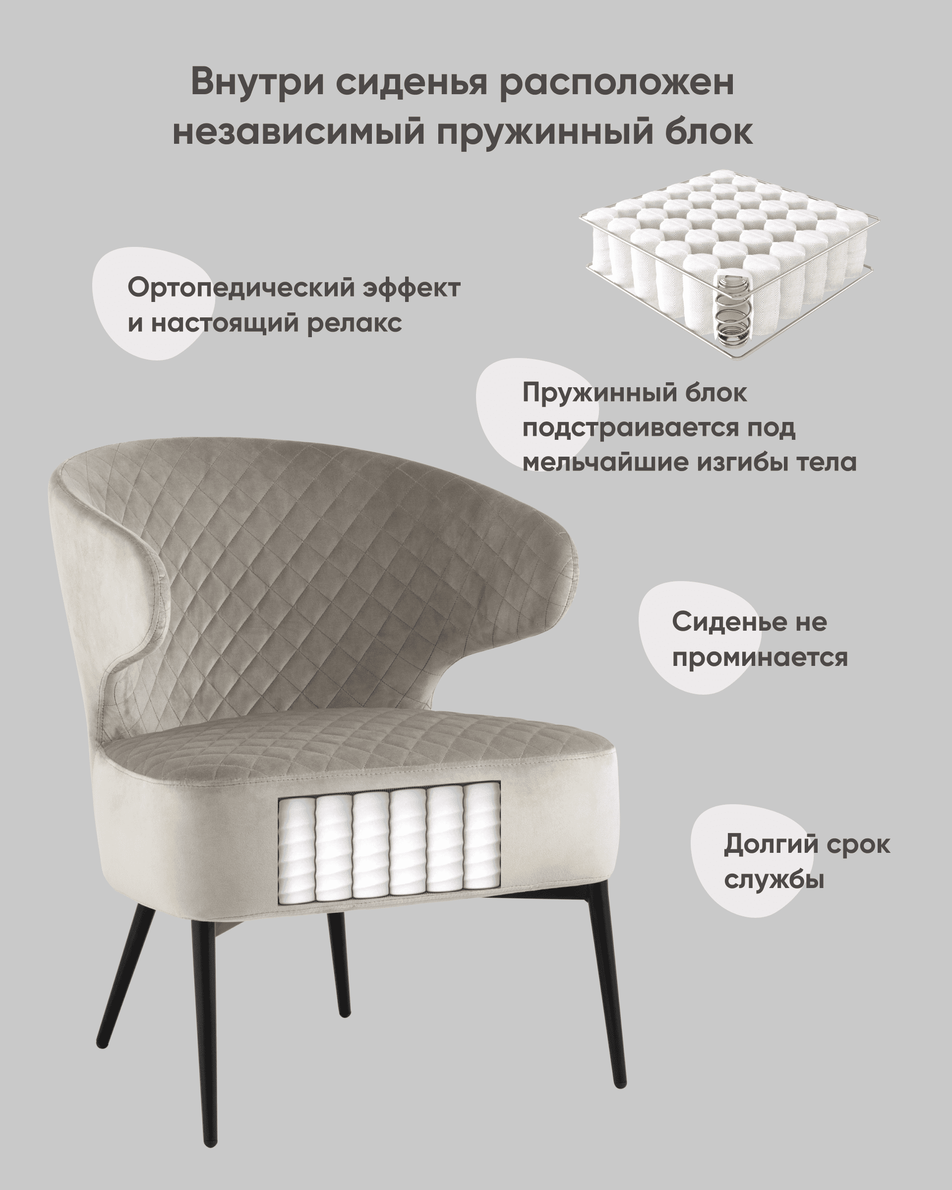 Кресло лаунж Royal велюр серо-бежевый ножки металл