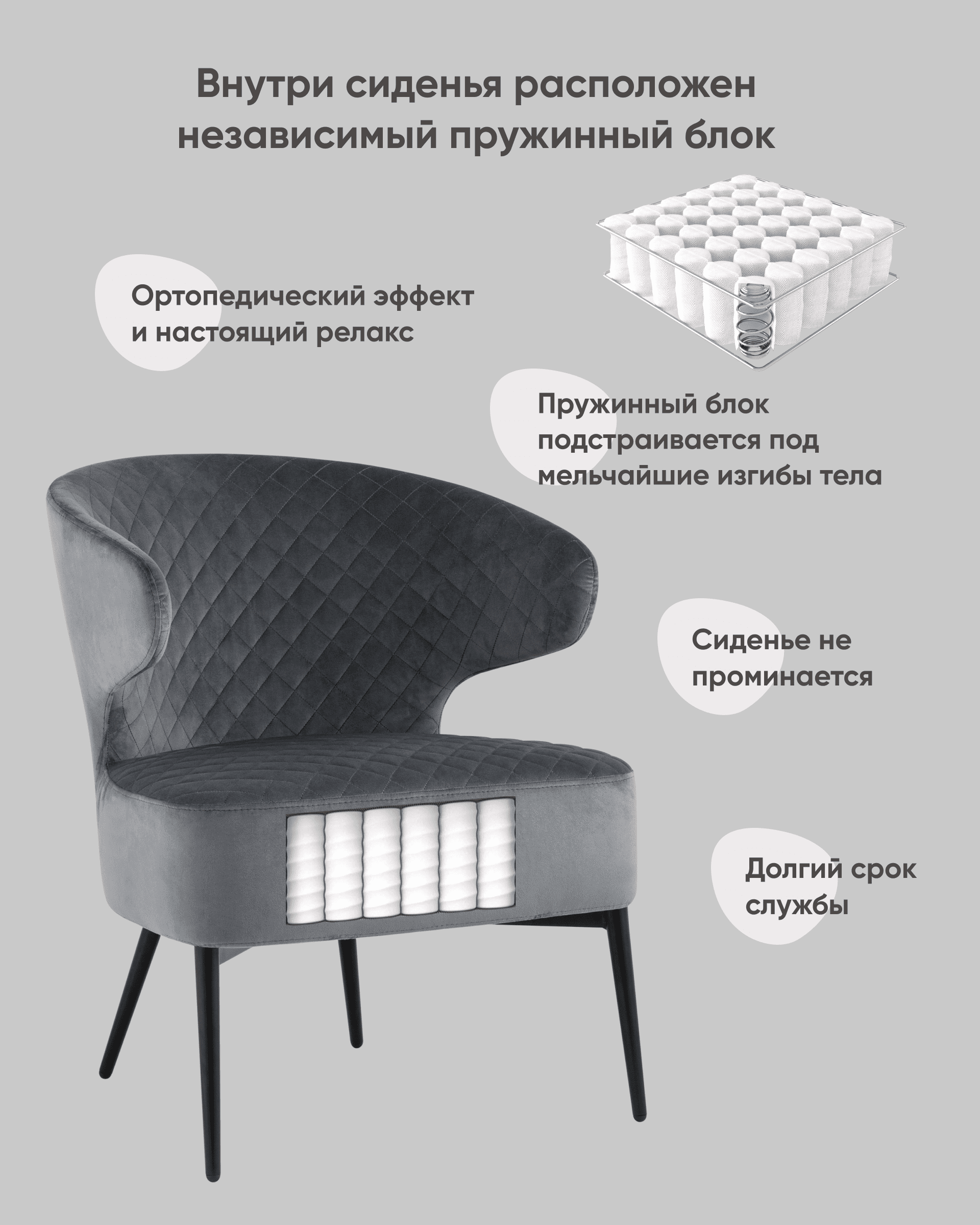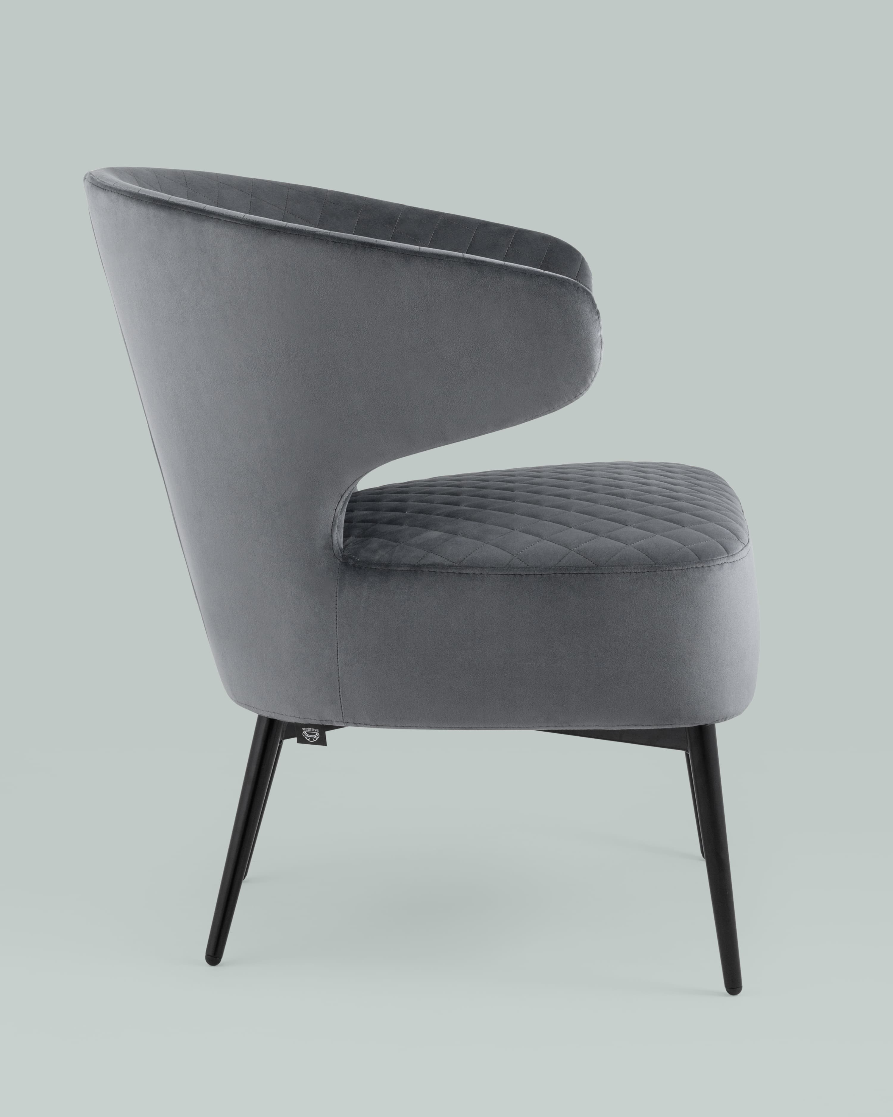 Кресло лаунж Royal велюр тёмно-серый ножки металл