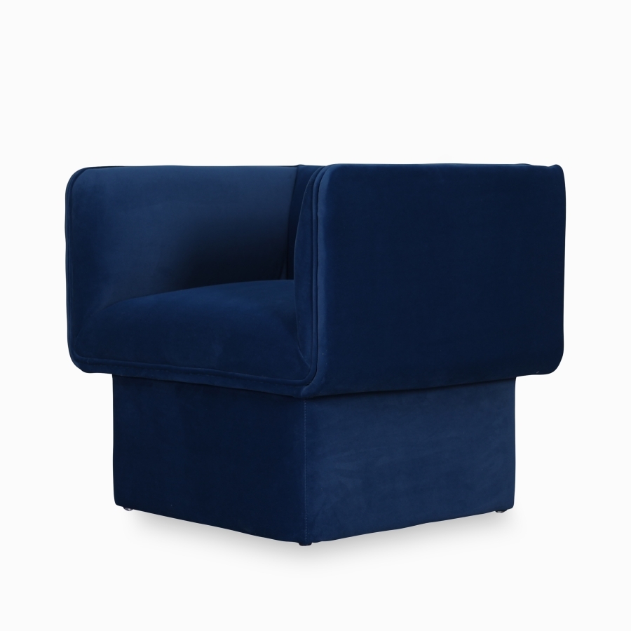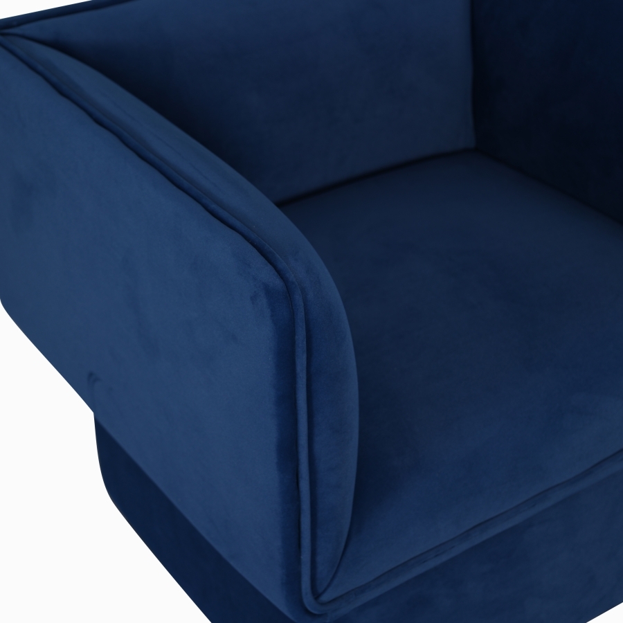 Яркий синий цвет обивки придаёт креслу современный и стильный вид. Этот насыщенный оттенок легко вписывается в различные интерьеры, добавляя яркость и индивидуальность в любое пространство.