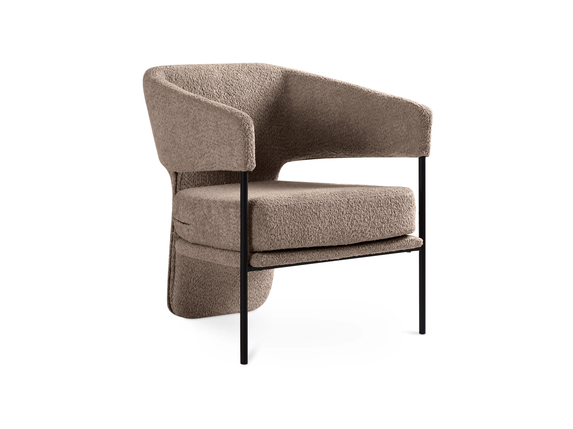 Характер кресла Loti выражен в эстетичном контрасте основательной спинки, которая формирует заднюю опору, и передних изящных ножек из металла. Такой дизайн делает модель выразительной и актуальной.