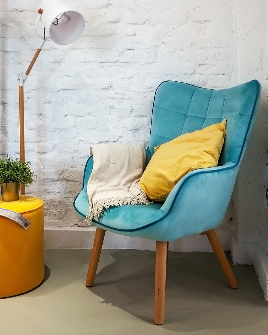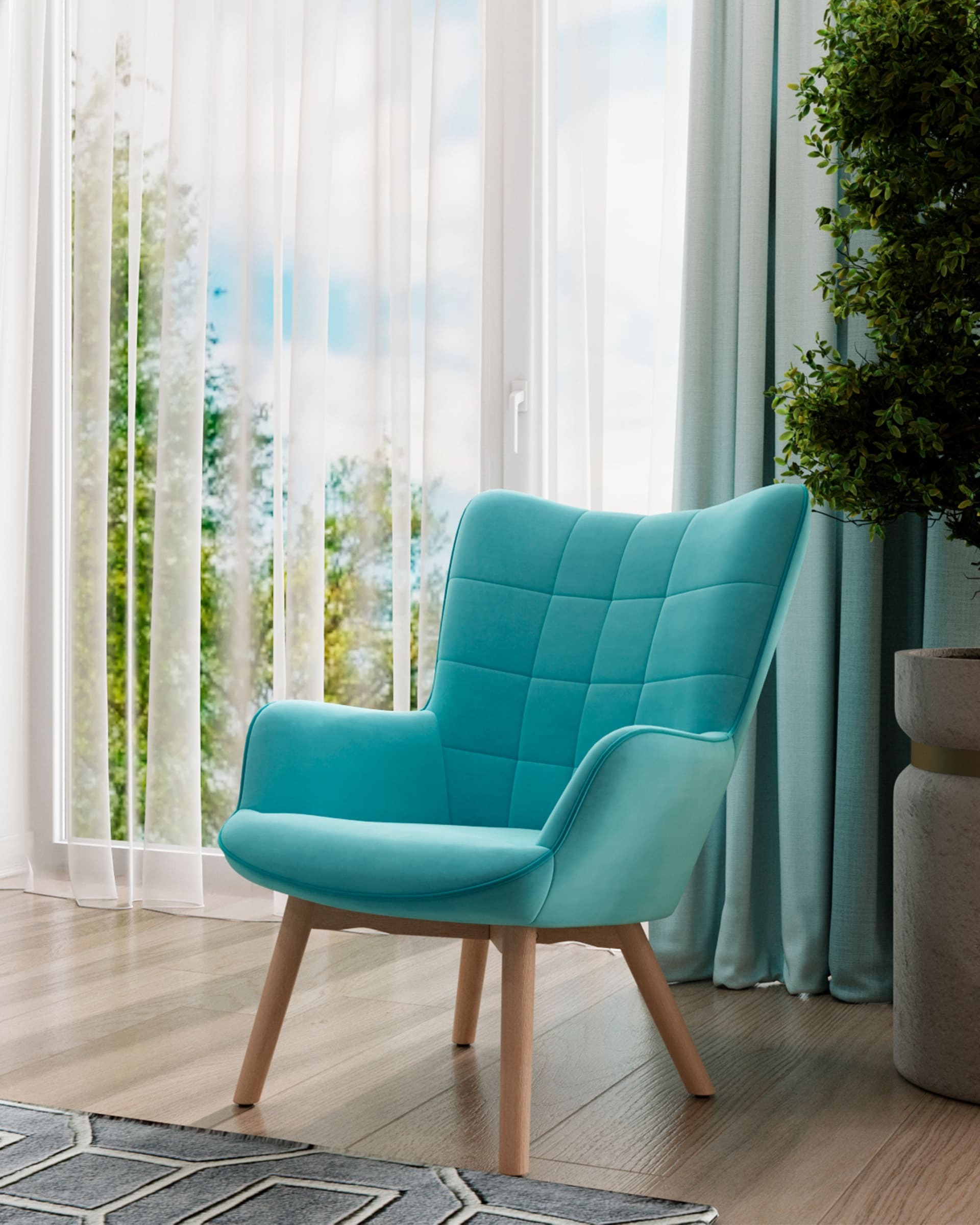 Кресло Манго мятное обивка вельвет с деревянными ножками