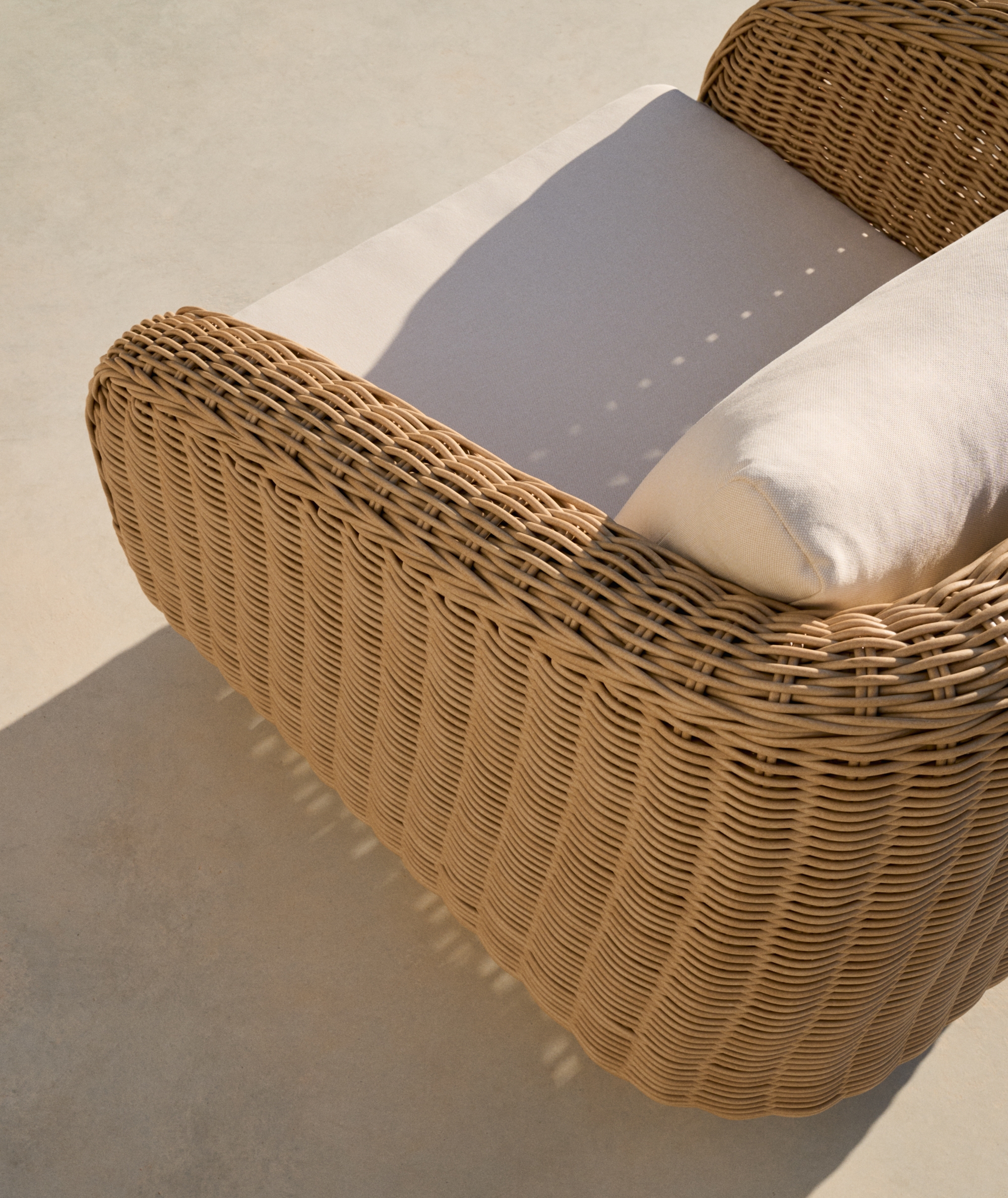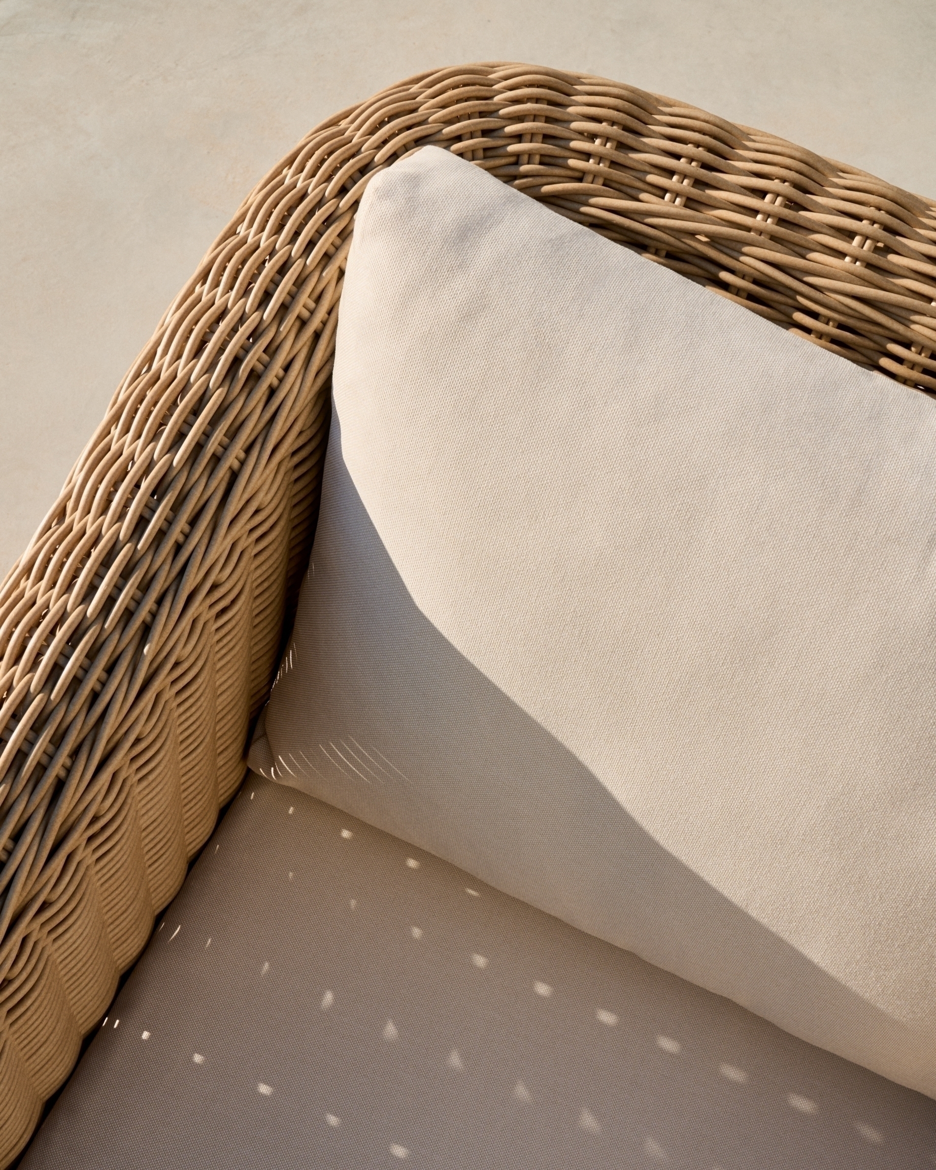 Коллекция, которая сочетает в себе деревенскую природу и практичность синтетического ротанга с эстетикой, характеризующейся плавными, округлыми линиями. Она устойчива к погодным условиям, что позволяет ей сохранять свою красоту и структуру как в помещении, так и на открытом воздухе, а также ее легко чистить.