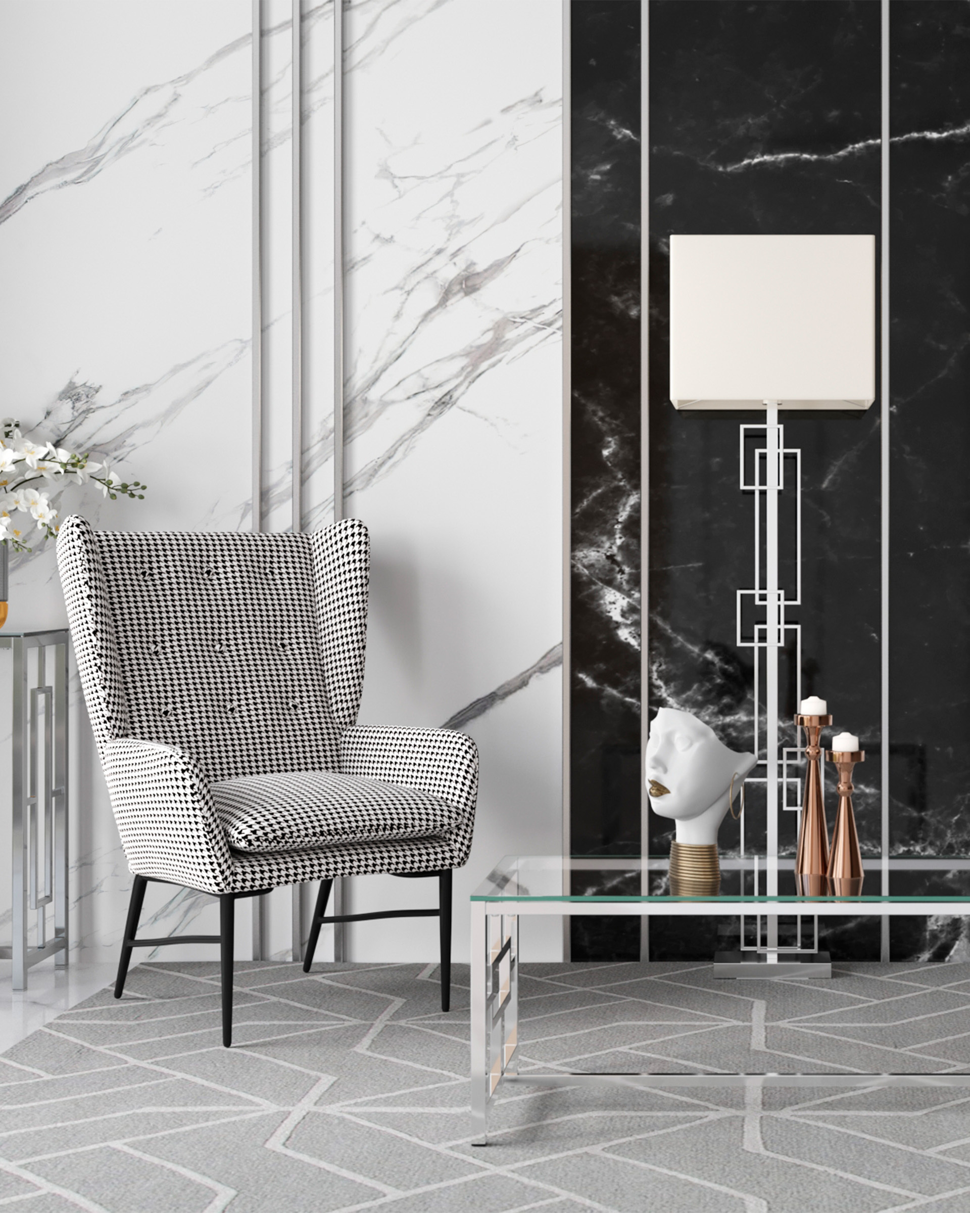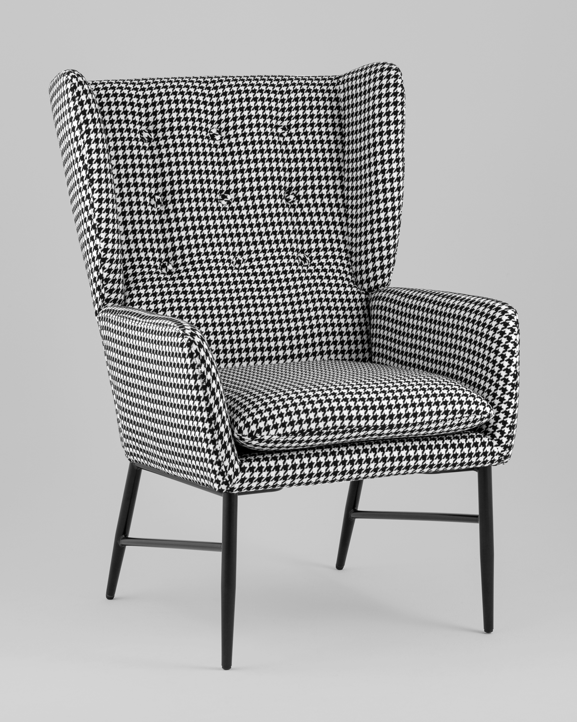 Кресло Мэйден гусиная лапка черно-белый мягкое тканевое