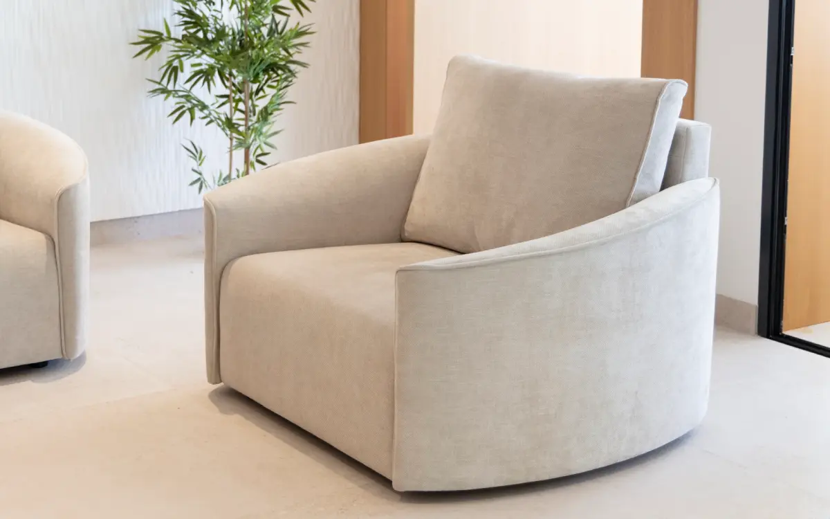 Nora & Natalie предлагает четыре типа подлокотников и два дизайна шезлонгов: круглый и прямоугольный.