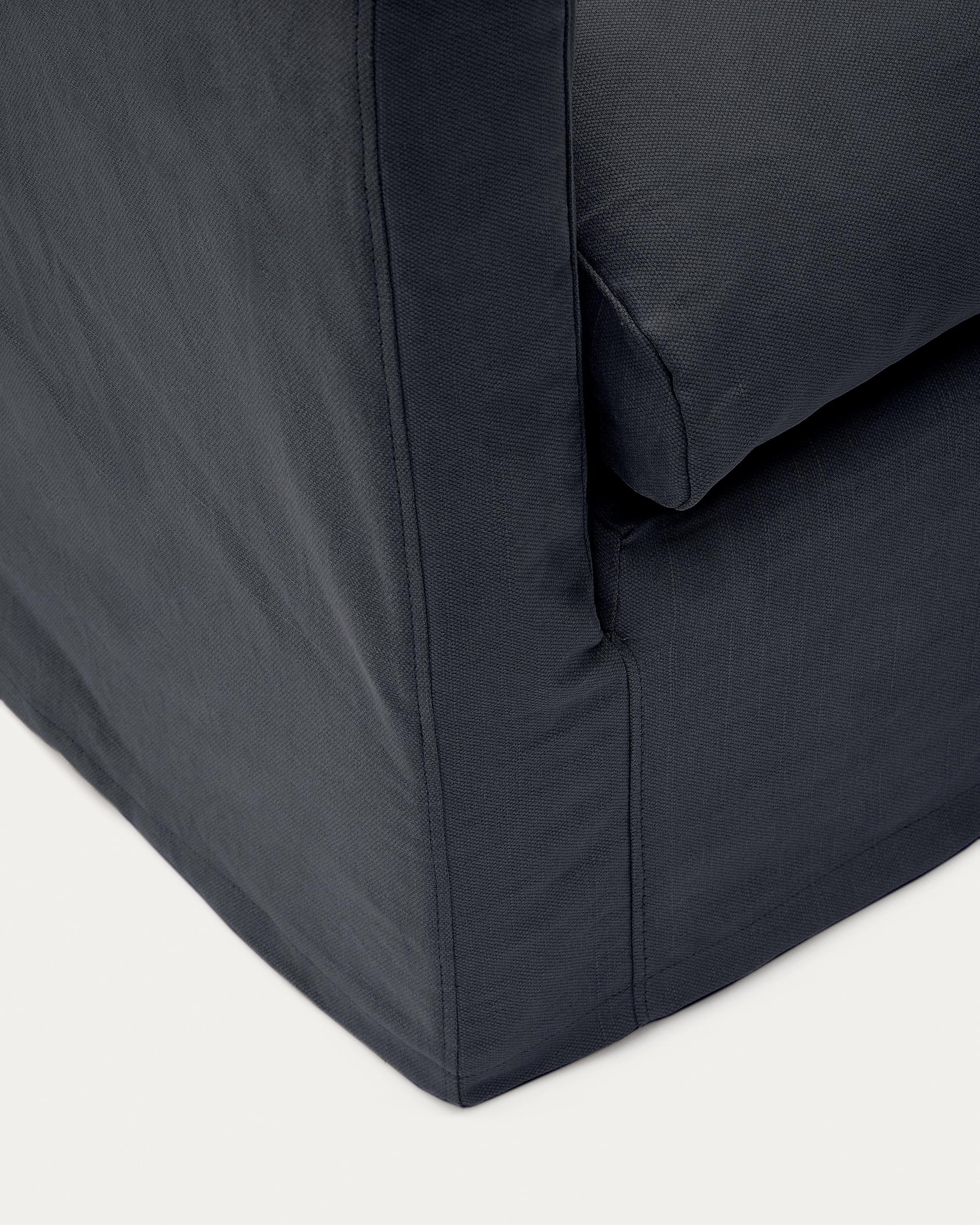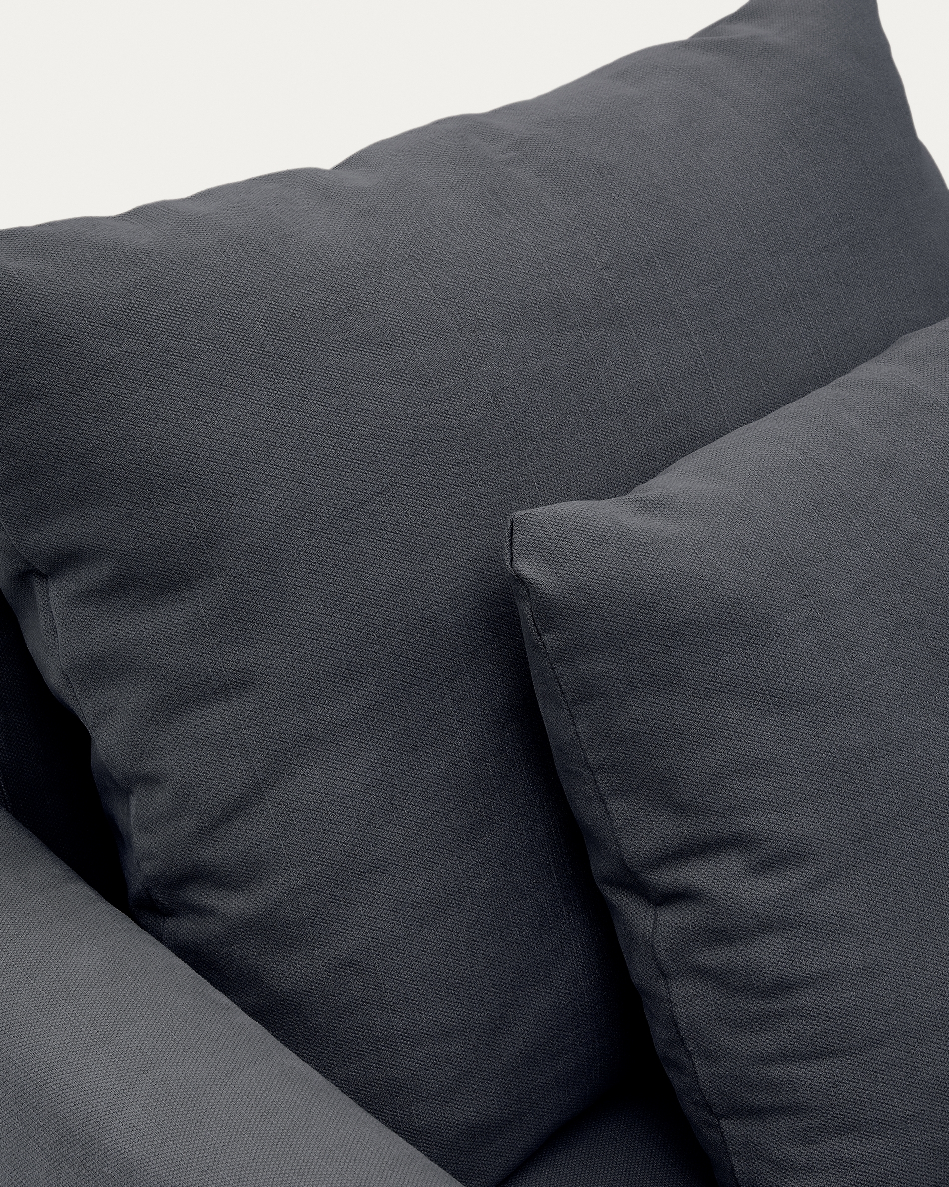 Нора сочетает естественную элегантность льняной и хлопчатобумажной ткани с дизайном прямой линии. Его большие размеры и подушки, наполненные пенопластовой крошкой и переработанными волокнами ПЭТ с эффектом прижима, делают его мягким сиденьем, которым можно наслаждаться в компании других.