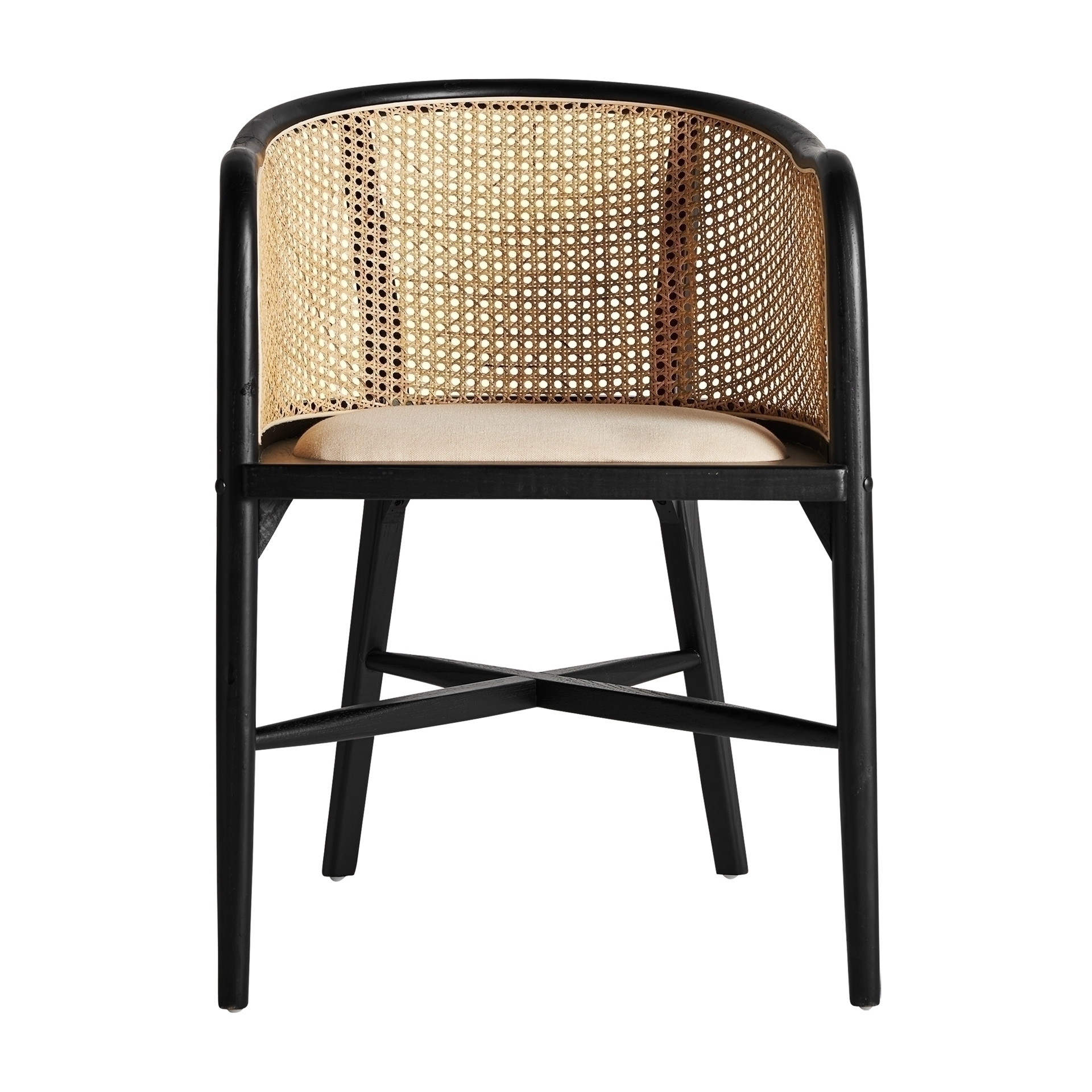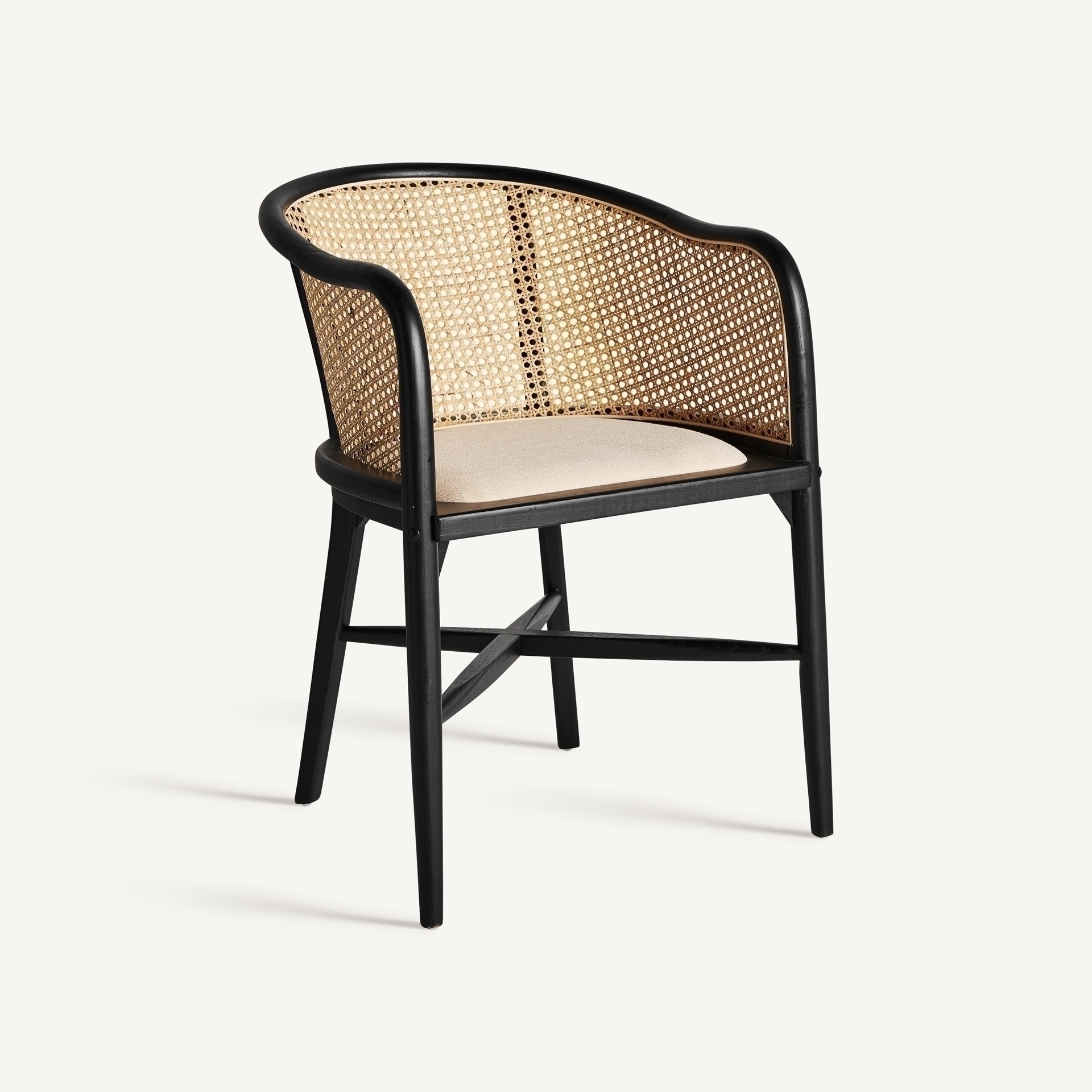 Кресло Nuchis в черном/натуральном цвете, в современном стиле. Изготовлен из березового дерева в сочетании с льном.