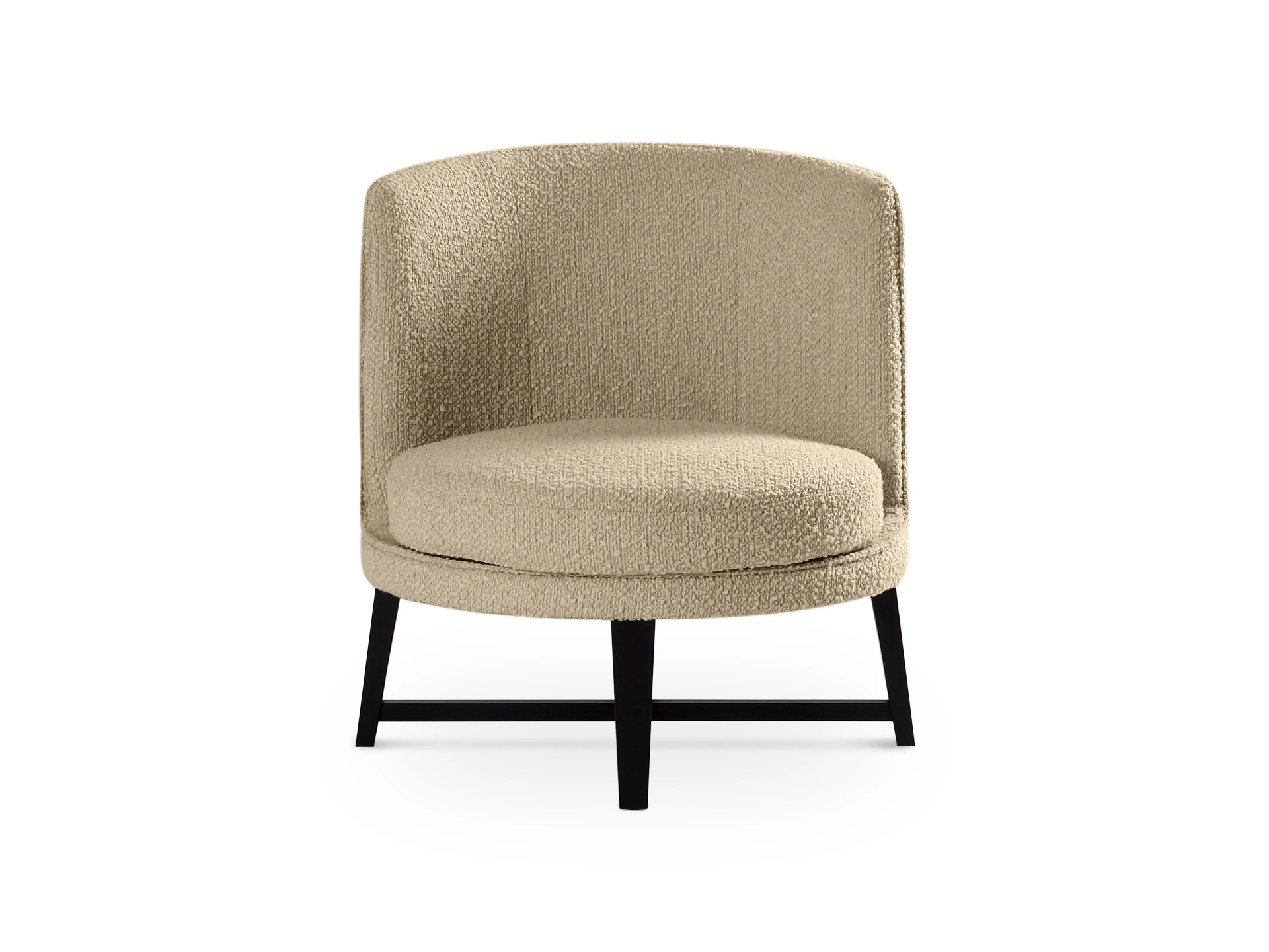 Кресло Onore очаровывает плавным силуэтом и лаконичным дизайном. Прямые граненые ножки из дерева невысоко приподнимают круглое сиденье с полукруглой спинкой. Симбиоз форм создает простой и выразительный силуэт, рождающий чувство спокойствия, умиротворения. «Обнимающая» спинка отвечает за защиту и уединение. Фактурная обивка букле придает мягкости, уюта, тепла.Кресло Onore подходит для оформления городской квартиры, студии, загородного дома, офиса, кафе, отеля. Эстетично впишется в гостиную с настроением неоклассики, сканди, минимализма, украсит спальню, детскую, кабинет, составит изящную пару журнальному или косметическому столику, дивану, пуфу, банкетке и подарит вам бесценные часы комфортного отдыха.