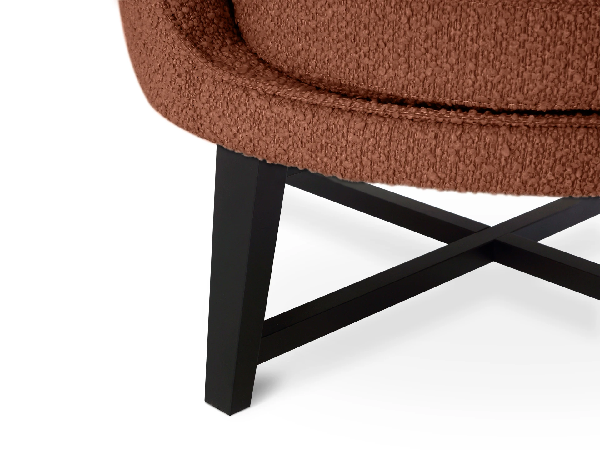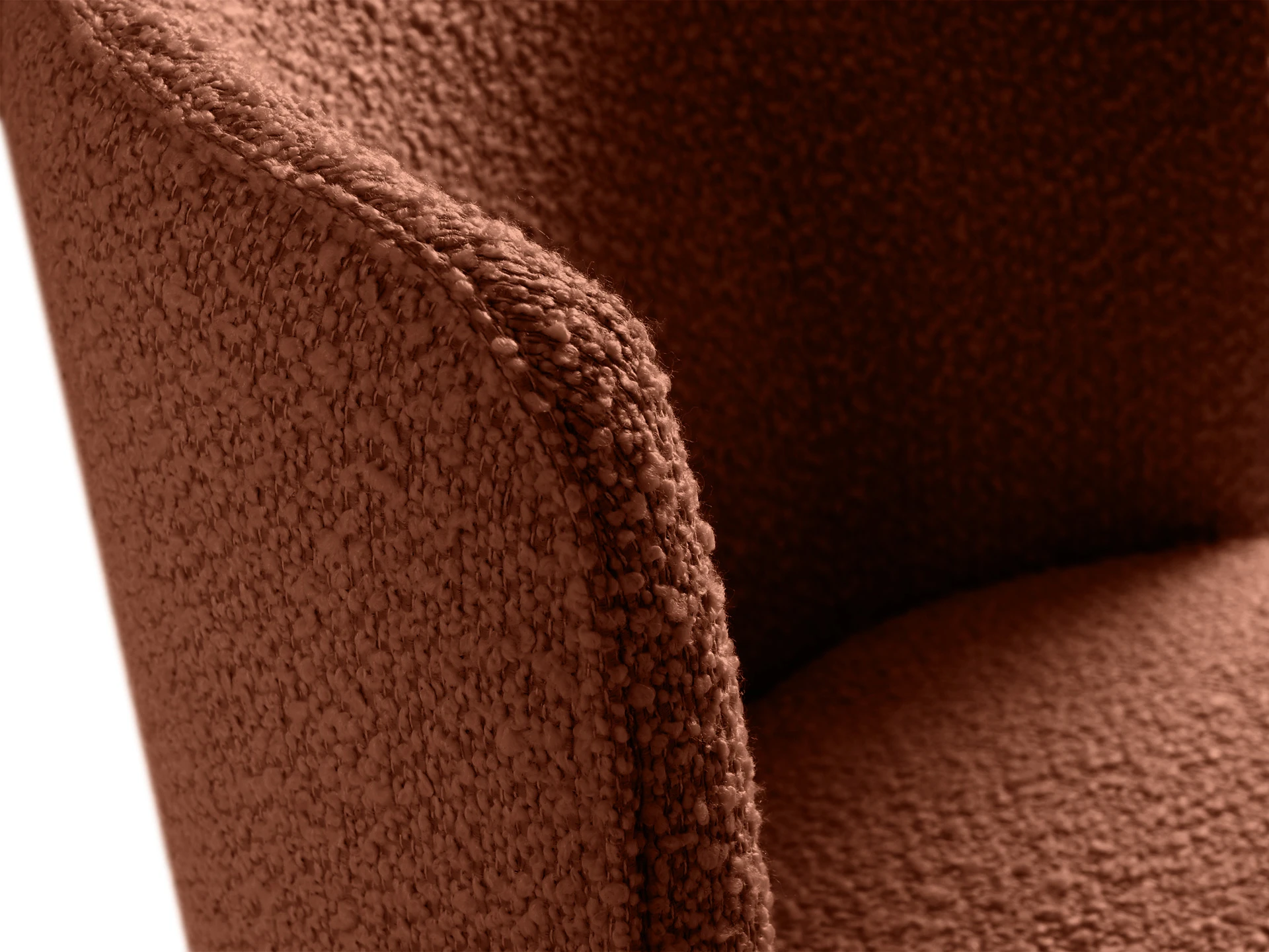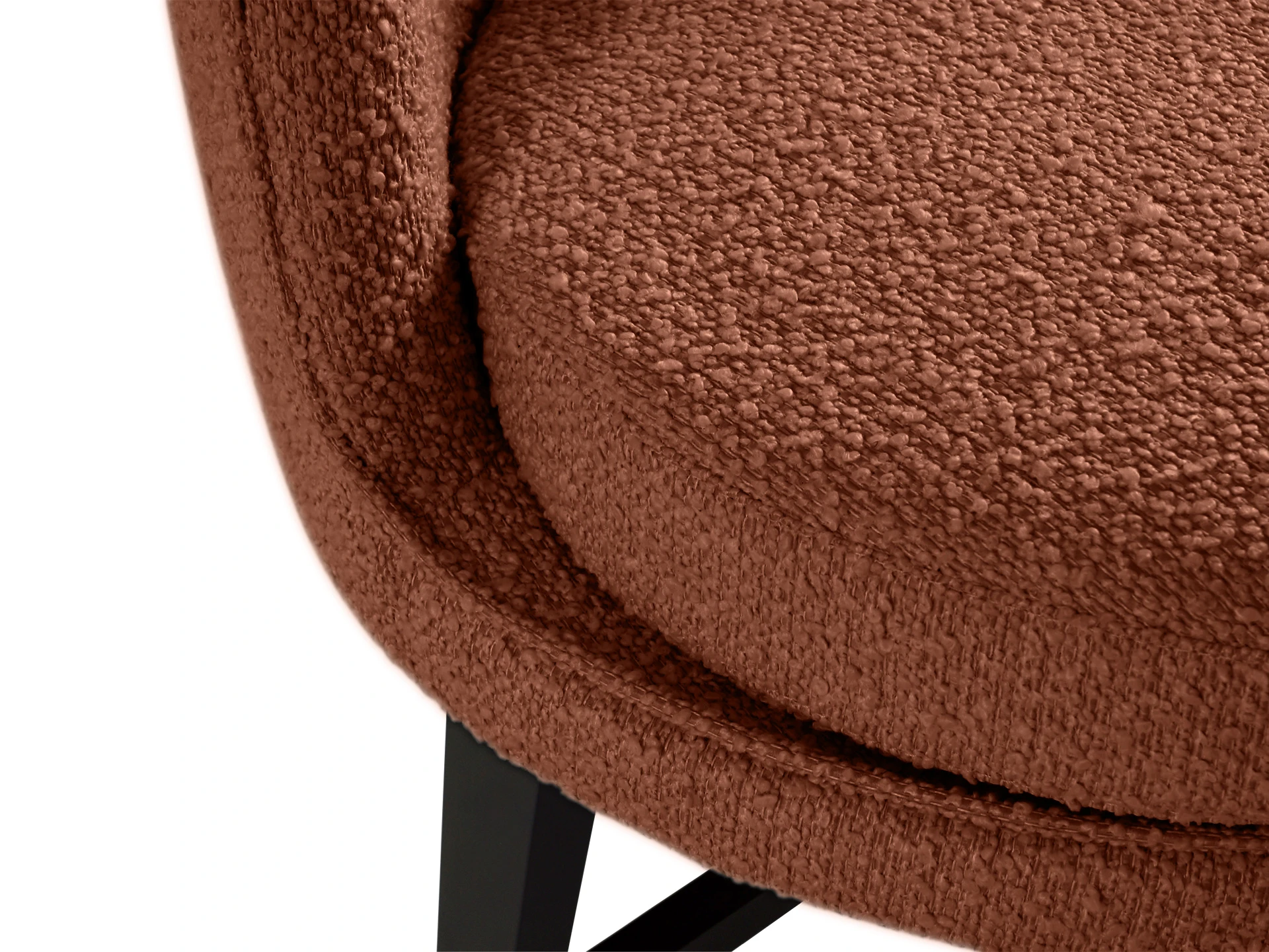 Кресло Onore очаровывает плавным силуэтом и лаконичным дизайном. Прямые граненые ножки из дерева невысоко приподнимают круглое сиденье с полукруглой спинкой. Симбиоз форм создает простой и выразительный силуэт, рождающий чувство спокойствия, умиротворения. «Обнимающая» спинка отвечает за защиту и уединение. Фактурная обивка букле придает мягкости, уюта, тепла.Кресло Onore подходит для оформления городской квартиры, студии, загородного дома, офиса, кафе, отеля. Эстетично впишется в гостиную с настроением неоклассики, сканди, минимализма, украсит спальню, детскую, кабинет, составит изящную пару журнальному или косметическому столику, дивану, пуфу, банкетке и подарит вам бесценные часы комфортного отдыха.