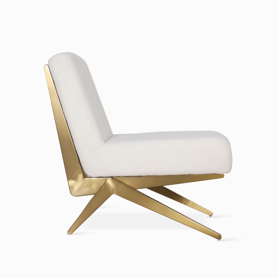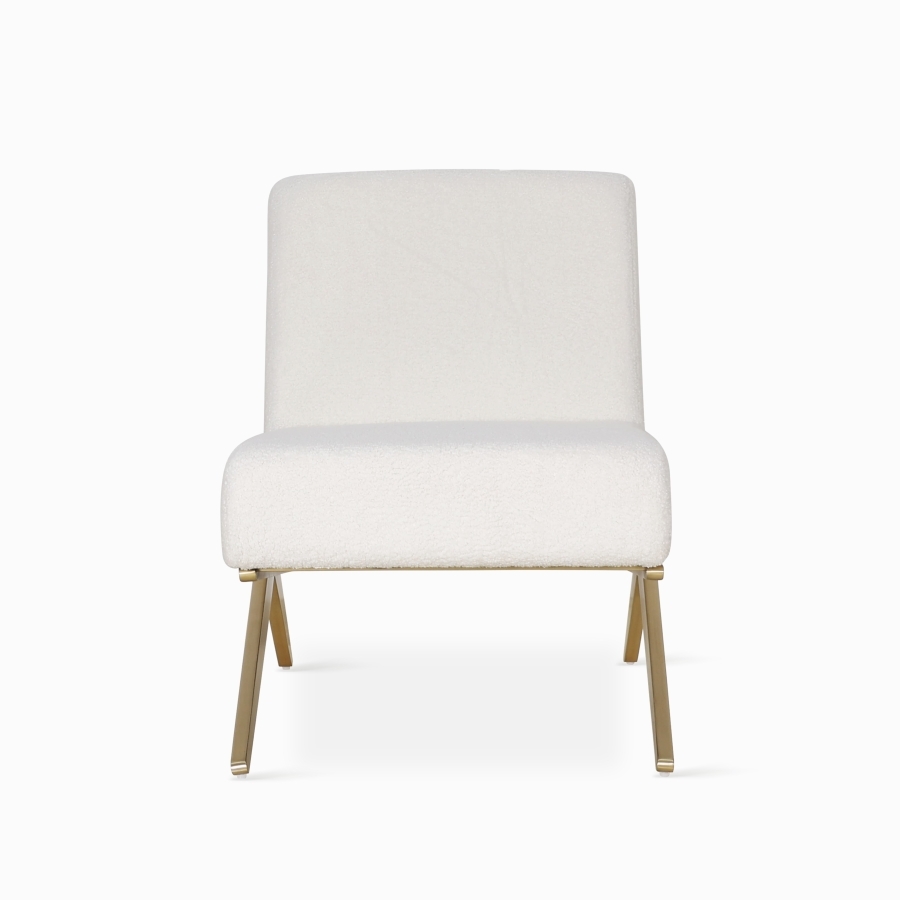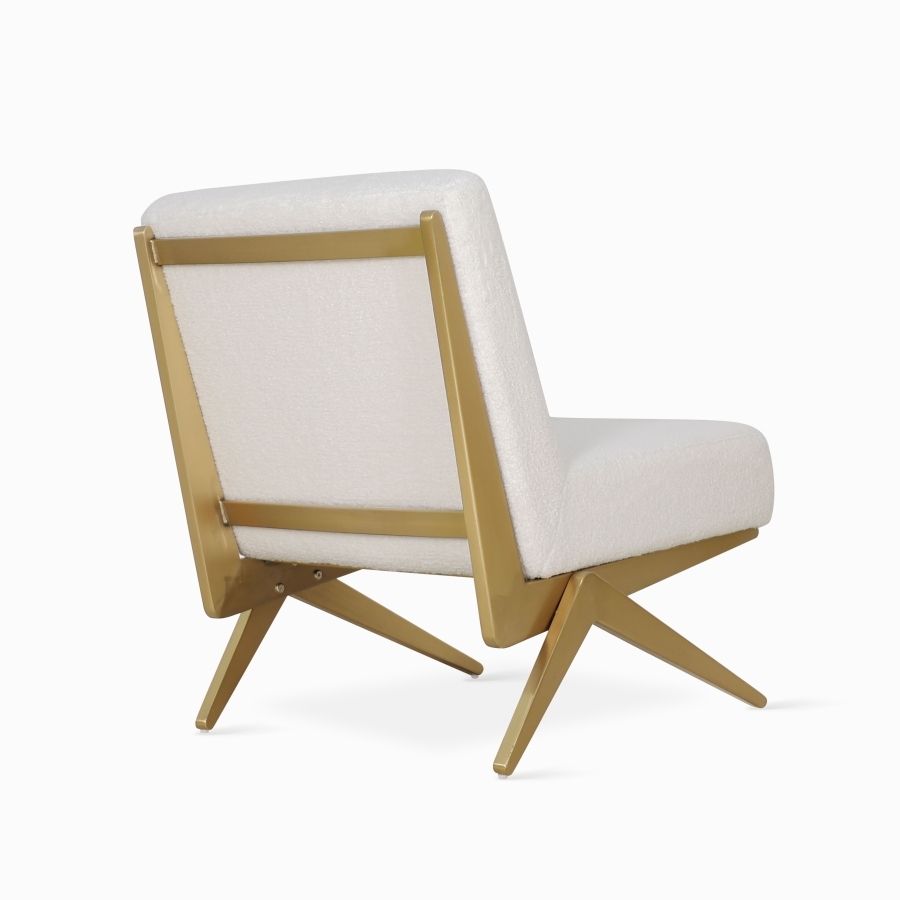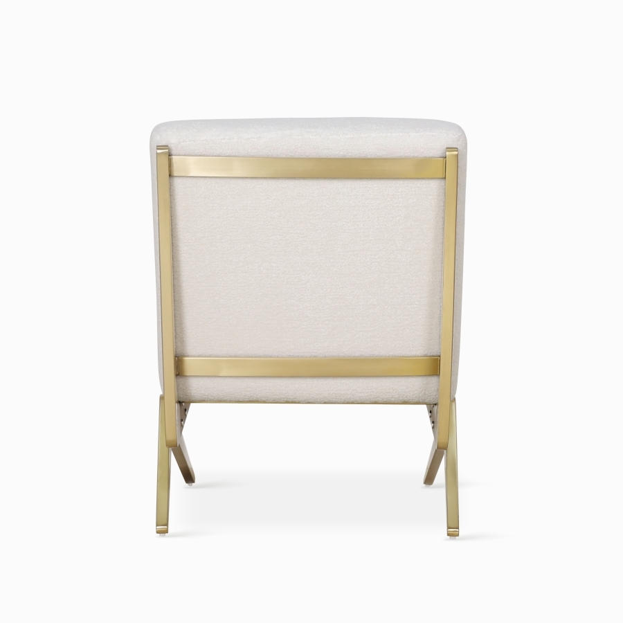Золотые ножки придают ему элегантный и богатый вид, а белая обивка идеально впишется в любой дизайн.