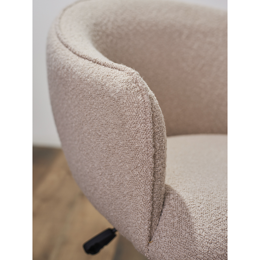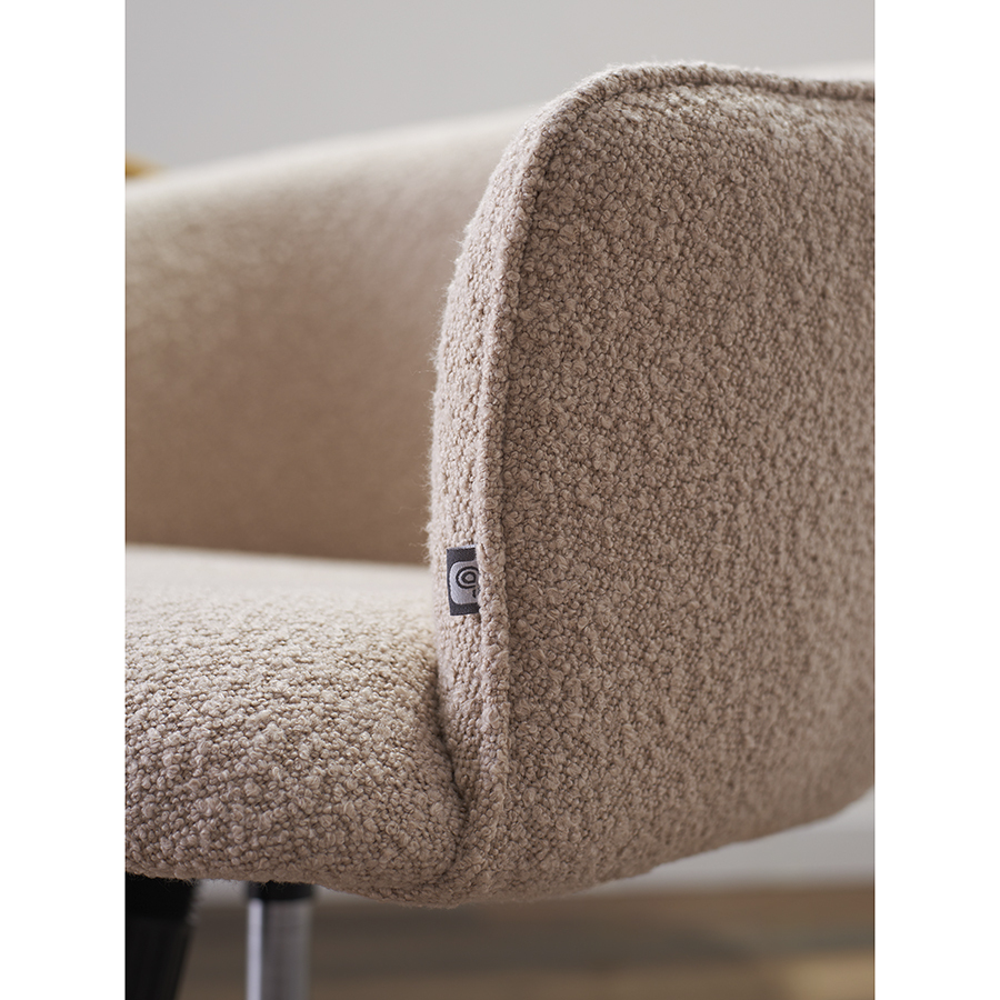 - Обивка из буклированной ткани придает креслу уютный и в то же время элегантный вид, характеризуется высокой устойчивостью к истиранию и износу.
