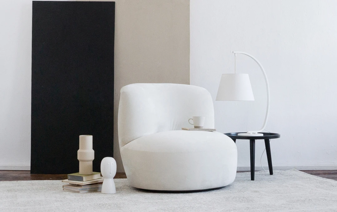 Диван и кресло оригинальной формы выполнены в минималистичном стиле. У мягкой мебели отсутствуют подлокотники, сиденье и спинка напоминают волну. Необычный дизайн сочетается с продуманной эргономичностью, комфортом при сидении и качественными материалами.