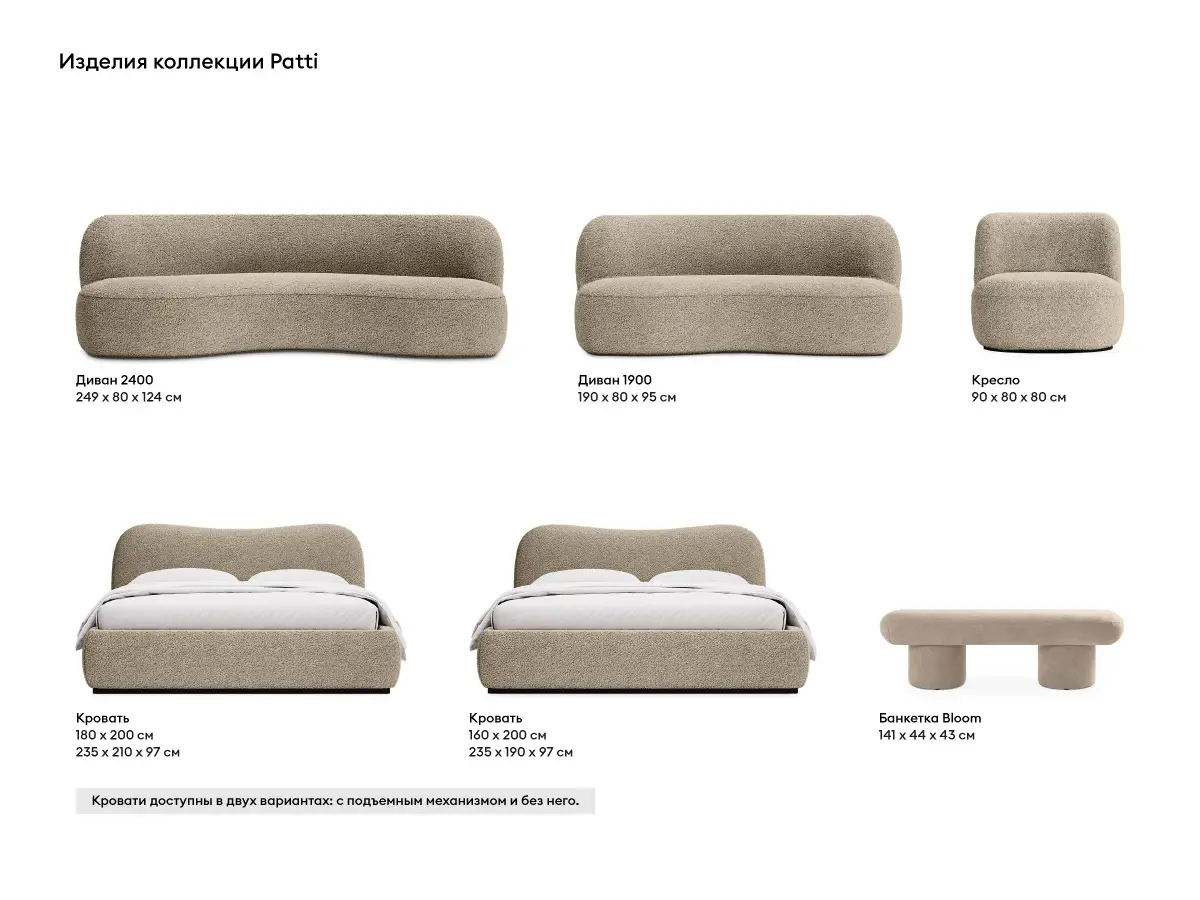 Диван и кресло оригинальной формы выполнены в минималистичном стиле. У мягкой мебели отсутствуют подлокотники, сиденье и спинка напоминают волну. Необычный дизайн сочетается с продуманной эргономичностью, комфортом при сидении и качественными материалами.