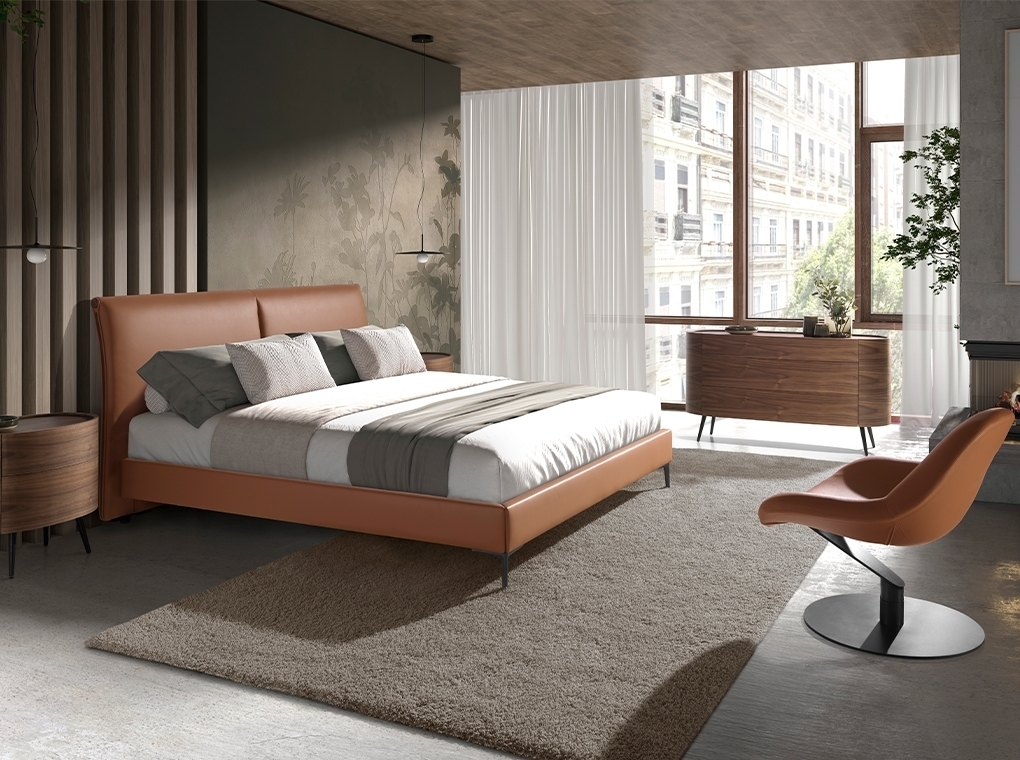 Поворотное кресло с современным дизайном с сиденьем и спинкой, обитое коричневым летним цветом. Как из-за стиля, так и из-за матовых черных ножек из нержавеющей стали это кресло является идеальным сочетанием дизайна и комфорта.