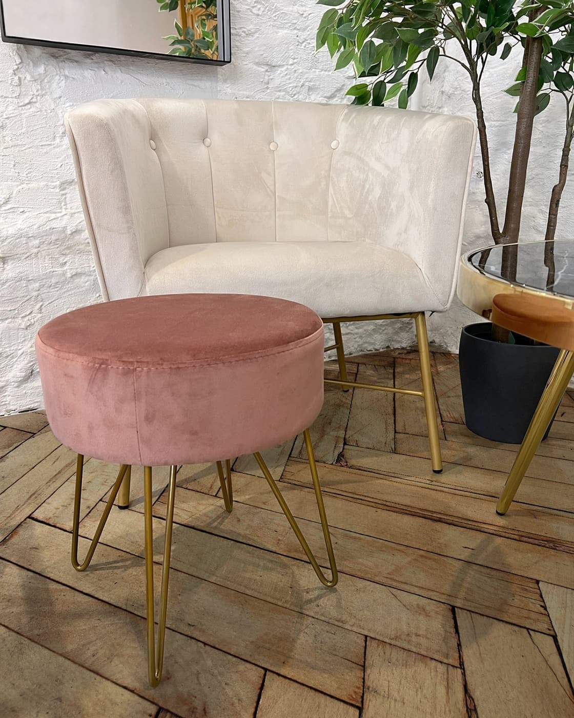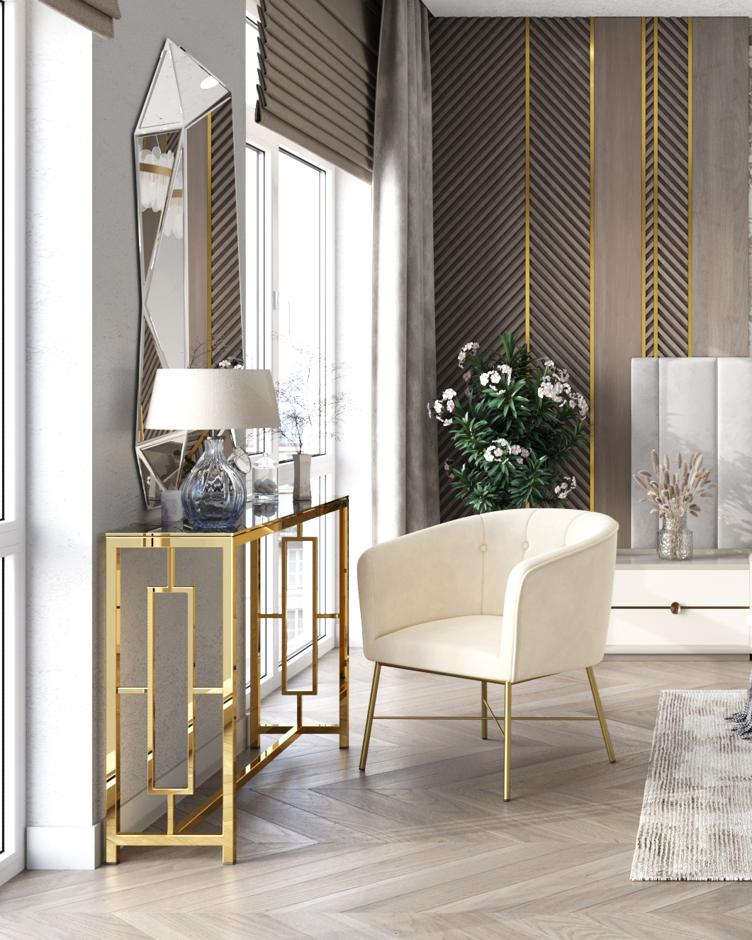 Кресло Шале бежевый обивка велюр ножки металл цвет золото
