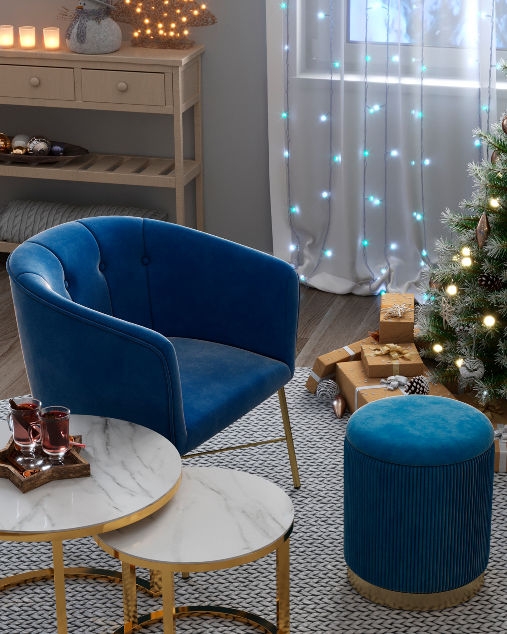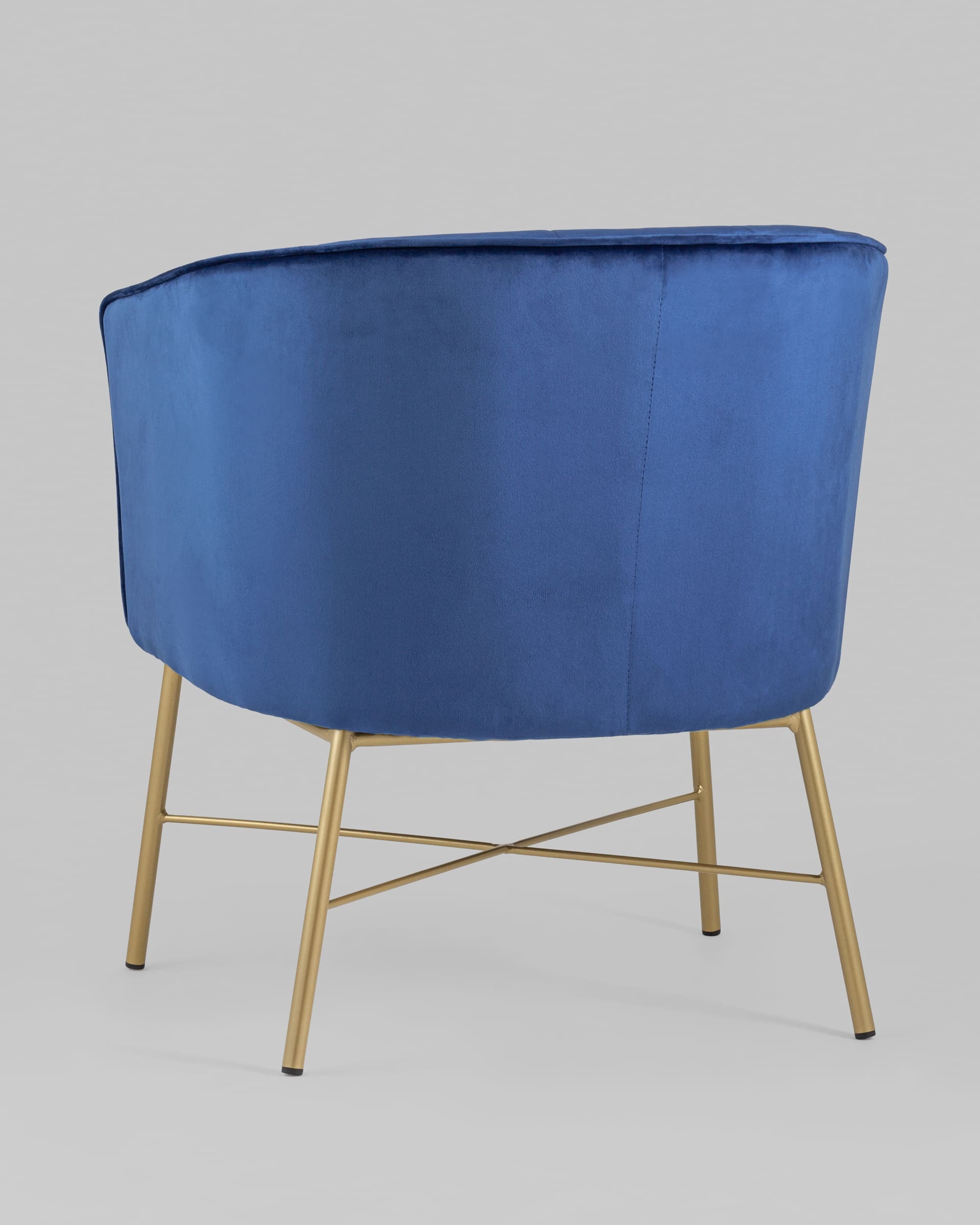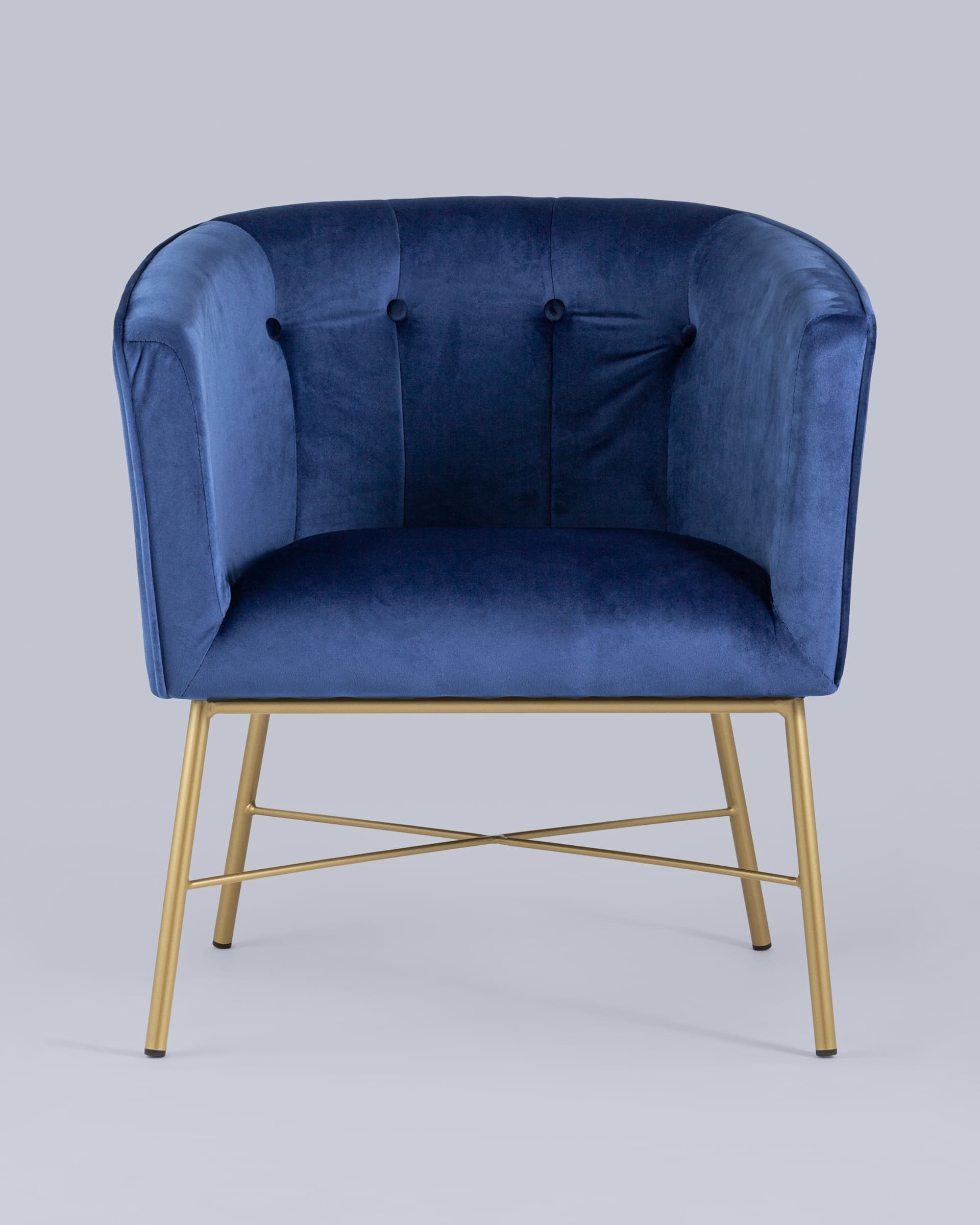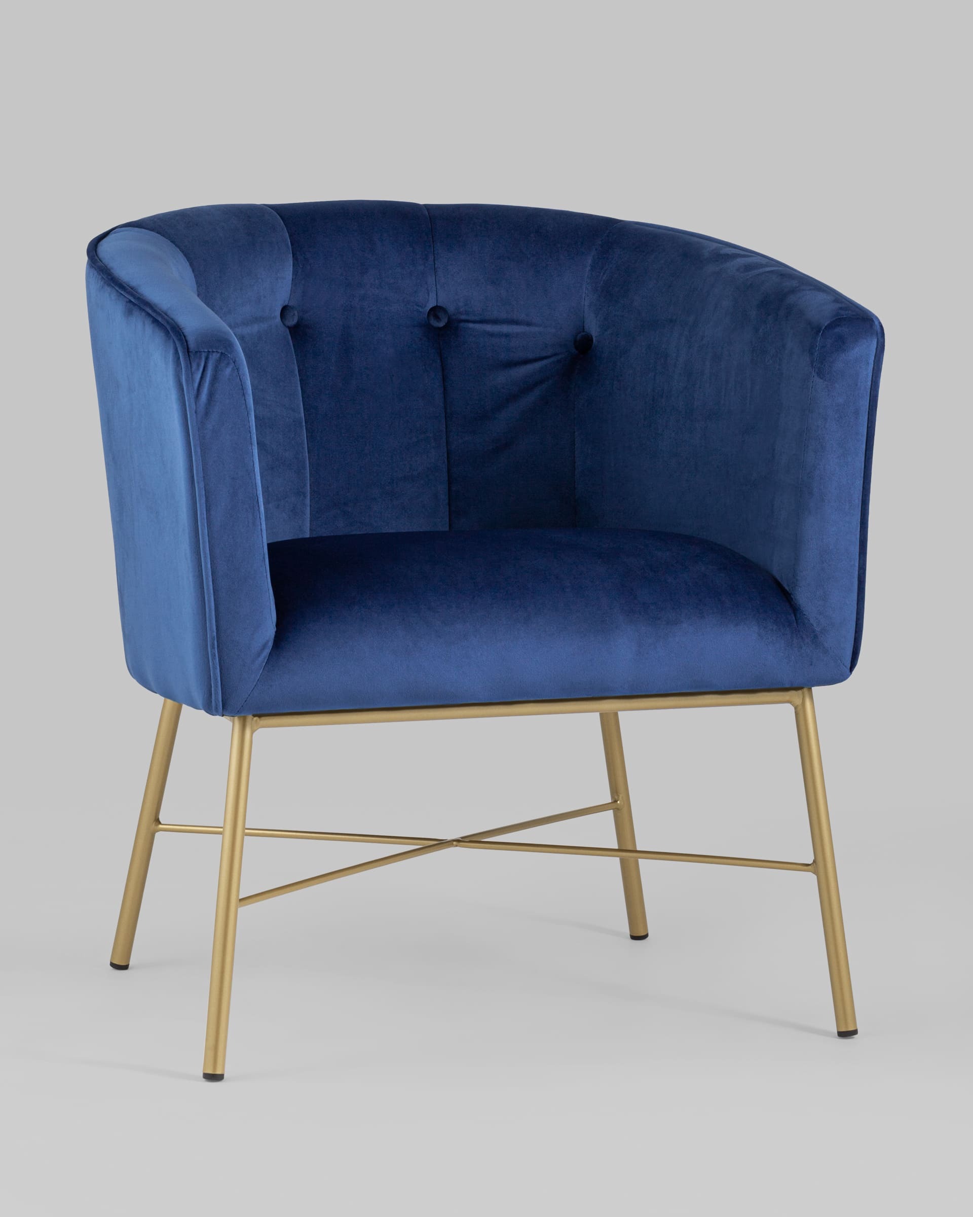 Кресло Шале синий обивка велюр ножки металл цвет золото