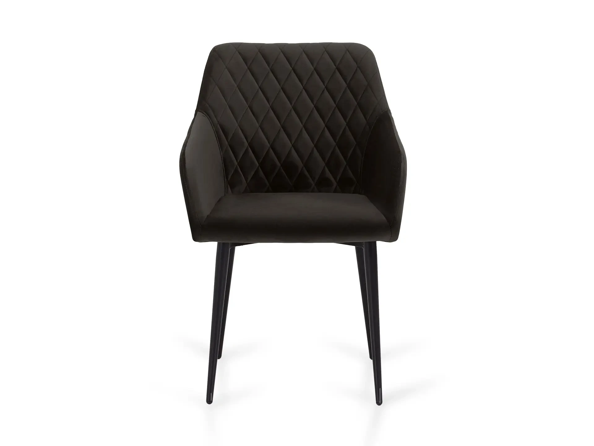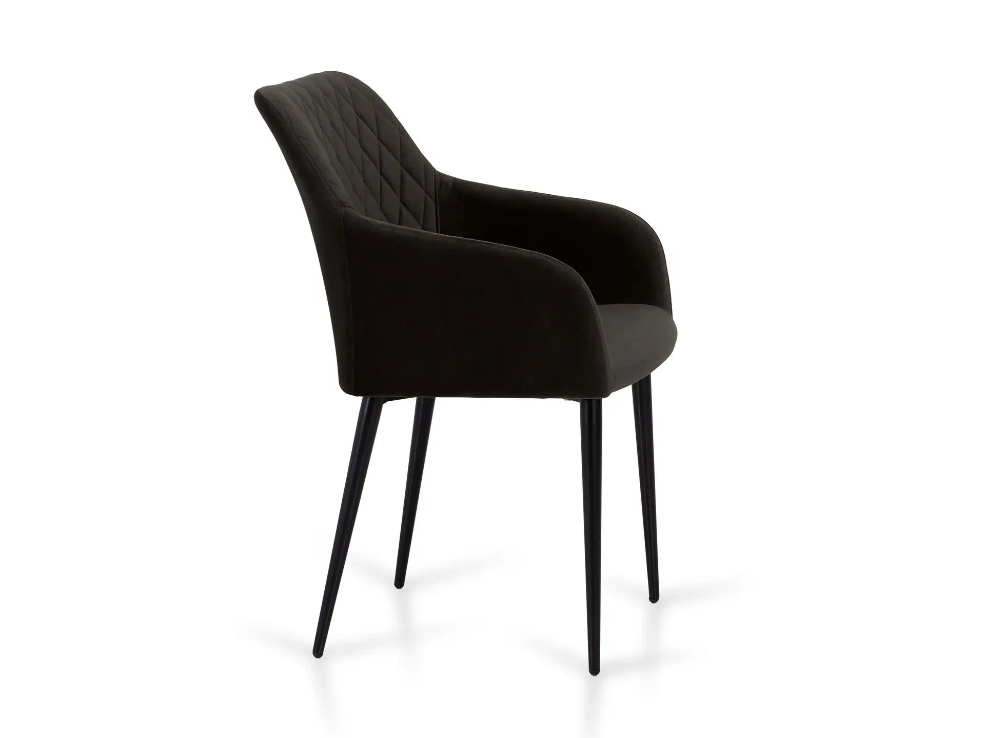 Роскошный и уютный стул в стиле арт-деко. Смотрится дорого, стильно и эффектно. Оно создано, чтобы очаровывать с первого взгляда. Плавные линии, изящные ножки, просторное сиденье и высокие подлокотники делают модель невероятно удобной для отдыха. Стильная отделка ромбом на спинке и сиденье в сочетании с благородным бархатом создает неповторимые переливы и придает стулу особую утонченность. Мягкий бархатистый велюр, высококачественный материал с повышенной износостойкостью. В качестве наполнителя используется литой (формованный) пенополиуретан высокой плотности. Металлические ножки черного матового цвета. На ножках предусмотрены специальные пластиковые накладки, которые придают стулу дополнительную устойчивость и защищают пол от царапин.