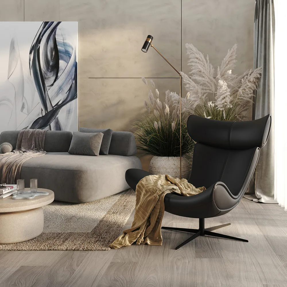 Высокая изогнутая спинка и приподнятое вверх сиденье словно приглашают вас присесть и самостоятельно оценить непревзойденный комфорт кресла Toro.