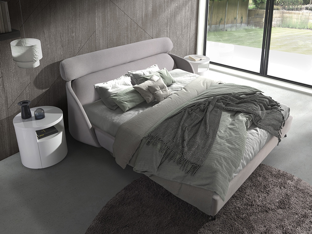 Кровать 7161/GC1725 от фабрики Angel Cerda – массивное оригинальное изголовье и изящные изогнутые ножки.