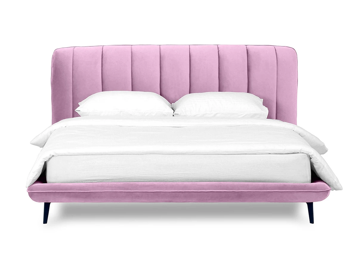 Прочные ножки из металла незаметно приподнимают корпус над полом. Поэтому кровать смотрится воздушно. Также это упрощает уборку. Мягкие изящные царги плавно перетекают в изголовье, единство с которым подчеркивается рельефным кантом.