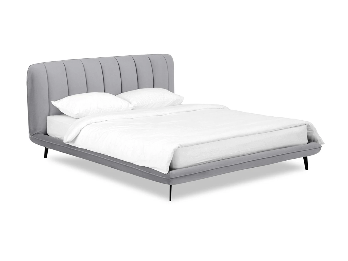 Прочные ножки из металла незаметно приподнимают корпус над полом. Поэтому кровать смотрится воздушно. Также это упрощает уборку. Мягкие изящные царги плавно перетекают в изголовье, единство с которым подчеркивается рельефным кантом.