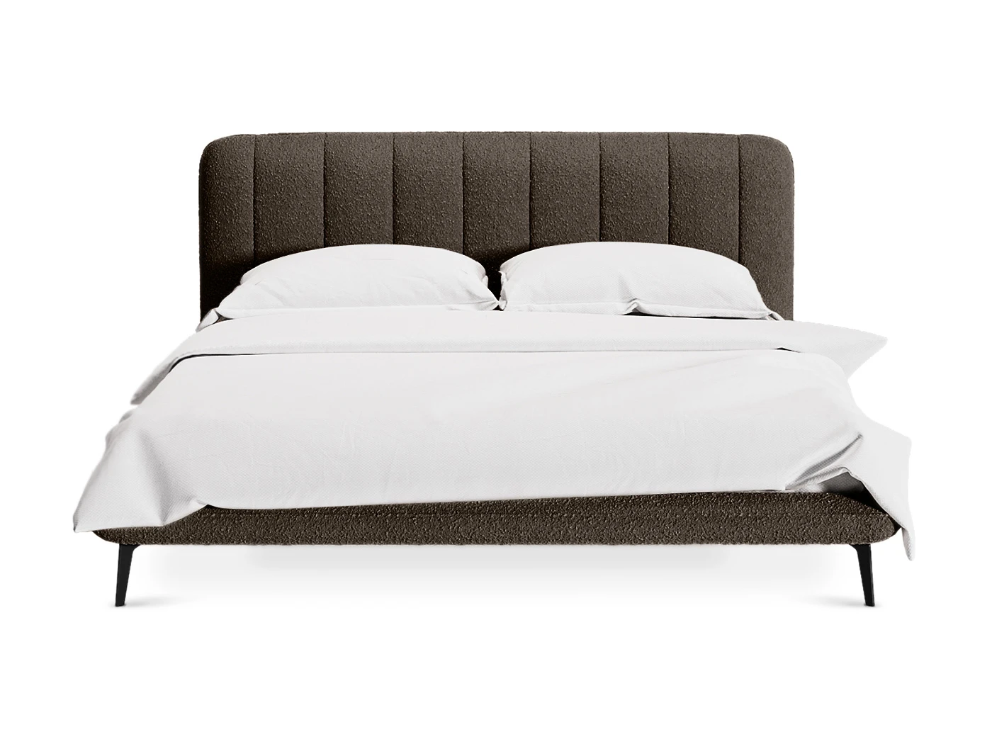 Прочные ножки из металла незаметно приподнимают корпус над полом. Поэтому кровать смотрится воздушно. Также это упрощает уборку. Мягкие изящные царги плавно перетекают в изголовье, единство с которым подчеркивается рельефным кантом.