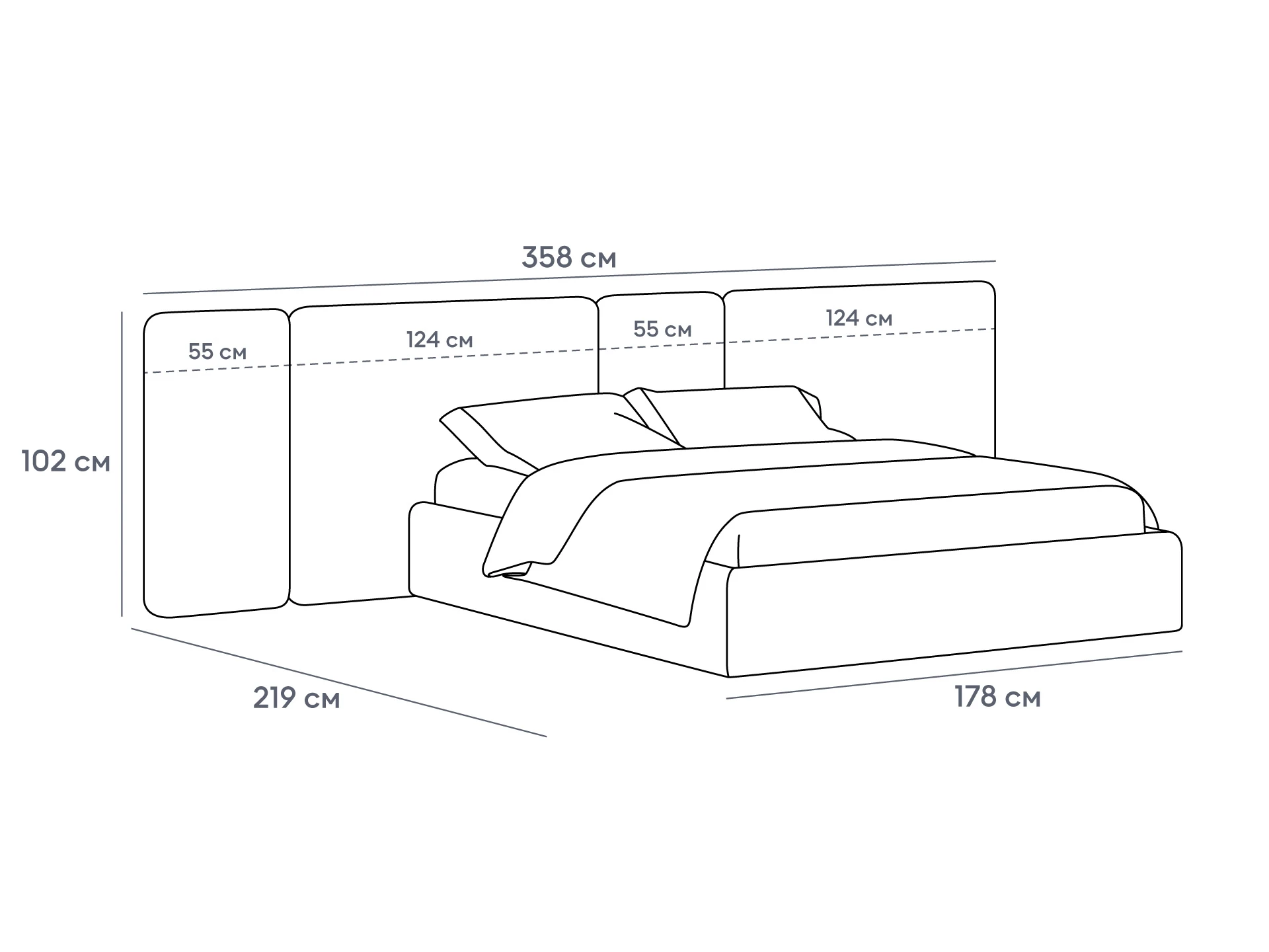 Кровать Atessa — идеальное сочетание современного стиля и функциональности. Выразительным элементом дизайна модели является широкое изголовье, состоящее из мягких настенных панелей. Которые можно комбинировать по оттенкам, создавая уникальные сочетания. Кровать Atessa может быть с подъёмным механизмом или без него — выбирайте в зависимости от ваших потребностей.