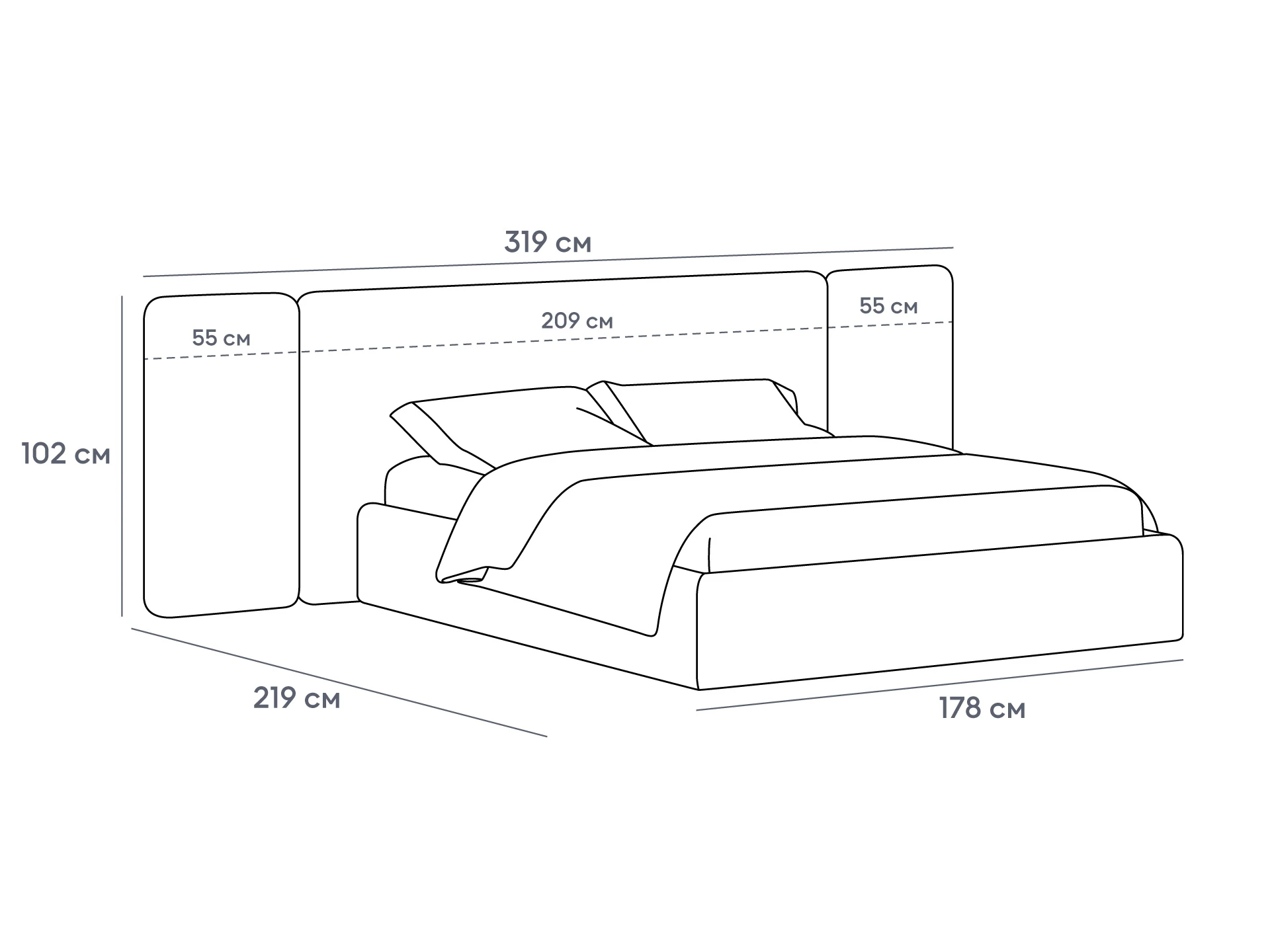 Кровать Atessa — идеальное сочетание современного стиля и функциональности. Выразительным элементом дизайна модели является широкое изголовье, состоящее из мягких настенных панелей. Которые можно комбинировать по оттенкам, создавая уникальные сочетания. Кровать Atessa может быть с подъёмным механизмом или без него — выбирайте в зависимости от ваших потребностей. Кровать с подъёмным механизмом обеспечит вам дополнительное место хранения, например, сезонных вещей или предметов, которыми редко пользуетесь.
