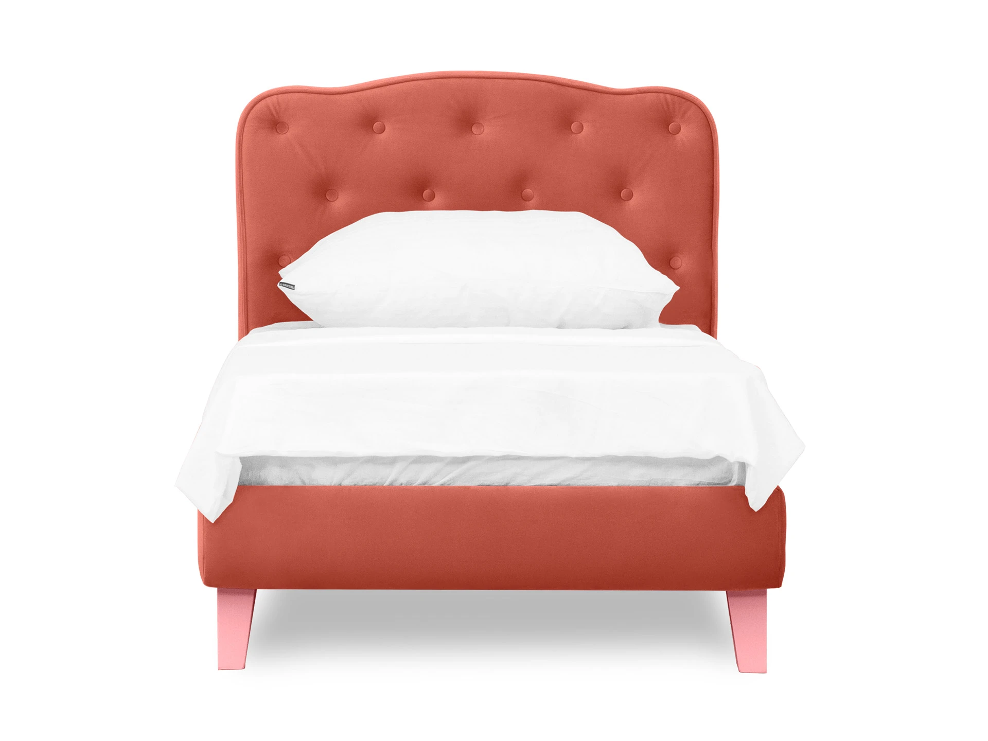 Линейка Candy — кровати для детей с высоким изголовьем и мягкими царгами. Изящное исполнение поможет воссоздать в интерьере картинку из сказки. Комната принцессы или спальня феи — Candy воплотит любую мечту! Воздушная и невесомая благодаря ножкам из массива дерева. Смотрится аккуратно и эстетично. Элегантное фигурное изголовье украшено текстильными пуговицами, напоминающими каретную стяжку «капитоне».