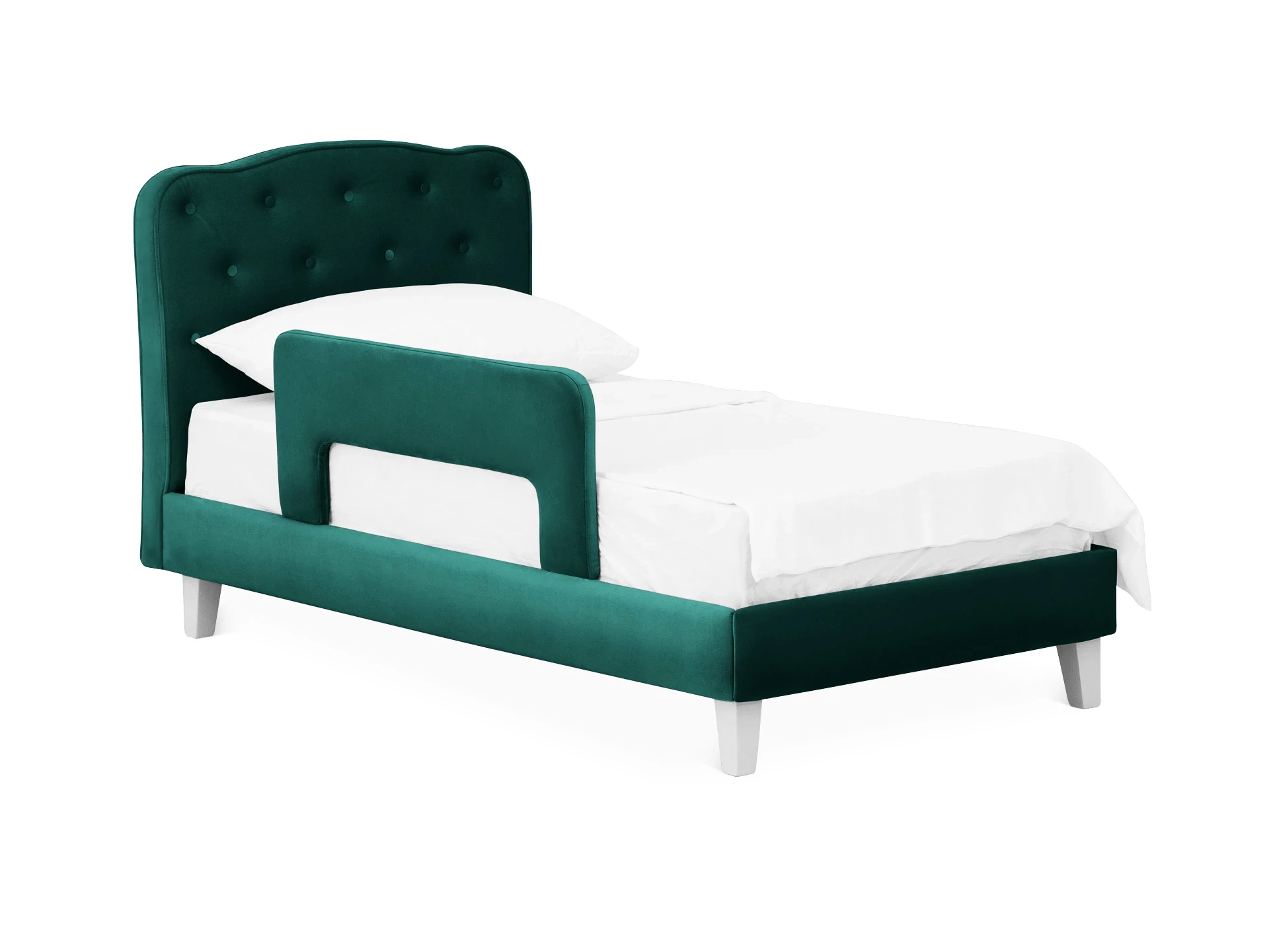 Каркас состоит из брусков хвойных пород — экологичный и надежный материал. Настилочные материалы спинки и царг — пенополиуретан различных толщин и синтепон. Благодаря повышенной комфортности мягких элементов создается ощущение покоя и безмятежности. Размер спального места: 800х1600 мм. Кровать имеет несъёмный тканевый чехол. Максимальная нагрузка на спальное место — 60 кг. Рекомендуется для детей от 2-х до 10 лет. Можно заказать дополнительные боковые бортики для безопасности. Большой выбор фактур и оттенков обивочного материала позволяет создать модель с учетом любых индивидуальных предпочтений.