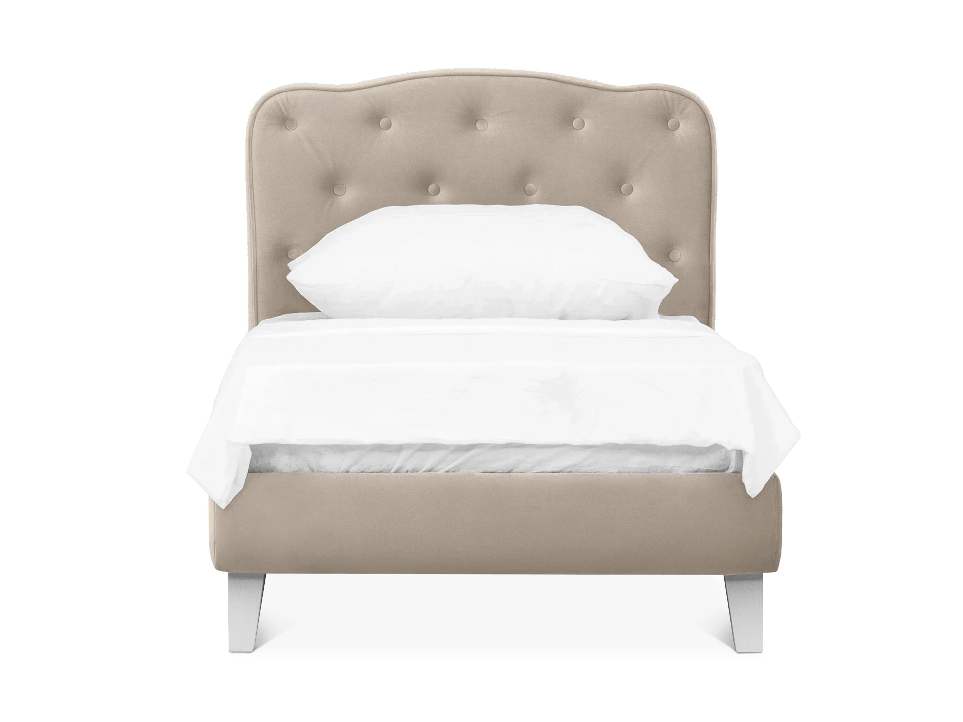 Линейка Candy — кровати для детей с высоким изголовьем и мягкими царгами. Изящное исполнение поможет воссоздать в интерьере картинку из сказки. Комната принцессы или спальня феи — Candy воплотит любую мечту! Воздушная и невесомая благодаря ножкам из массива дерева. Смотрится аккуратно и эстетично. Элегантное фигурное изголовье украшено текстильными пуговицами, напоминающими каретную стяжку «капитоне».