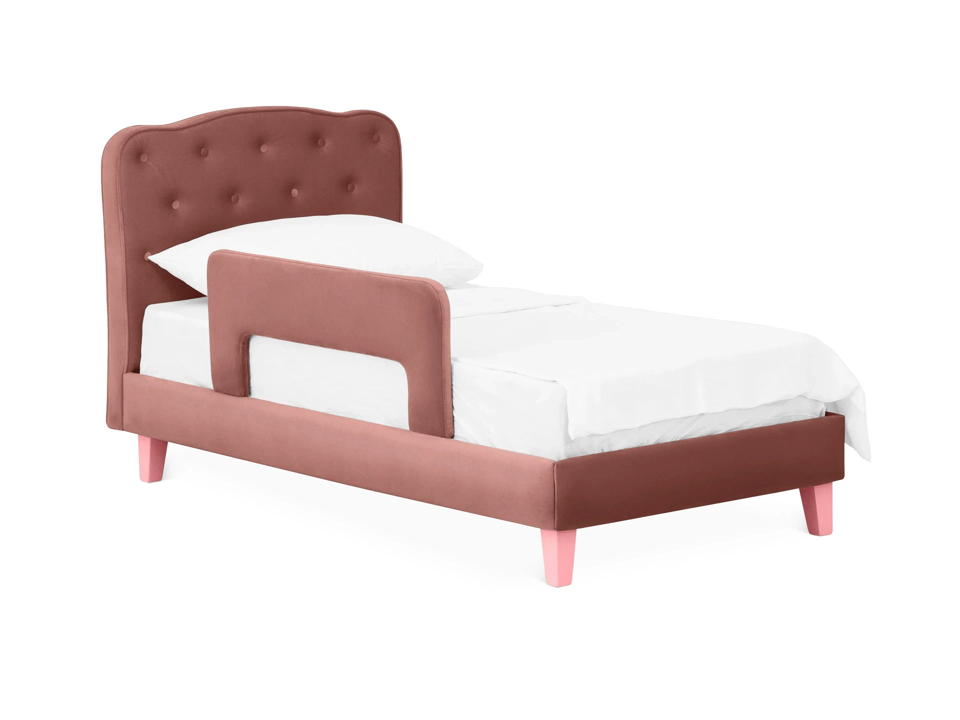 Линейка Candy — кровати для детей с высоким изголовьем и мягкими царгами. Изящное исполнение поможет воссоздать в интерьере картинку из сказки. Комната принцессы или спальня феи — Candy воплотит любую мечту! Воздушная и невесомая благодаря ножкам из массива дерева. Смотрится аккуратно и эстетично. Элегантное фигурное изголовье украшено текстильными пуговицами, напоминающими каретную стяжку «капитоне».