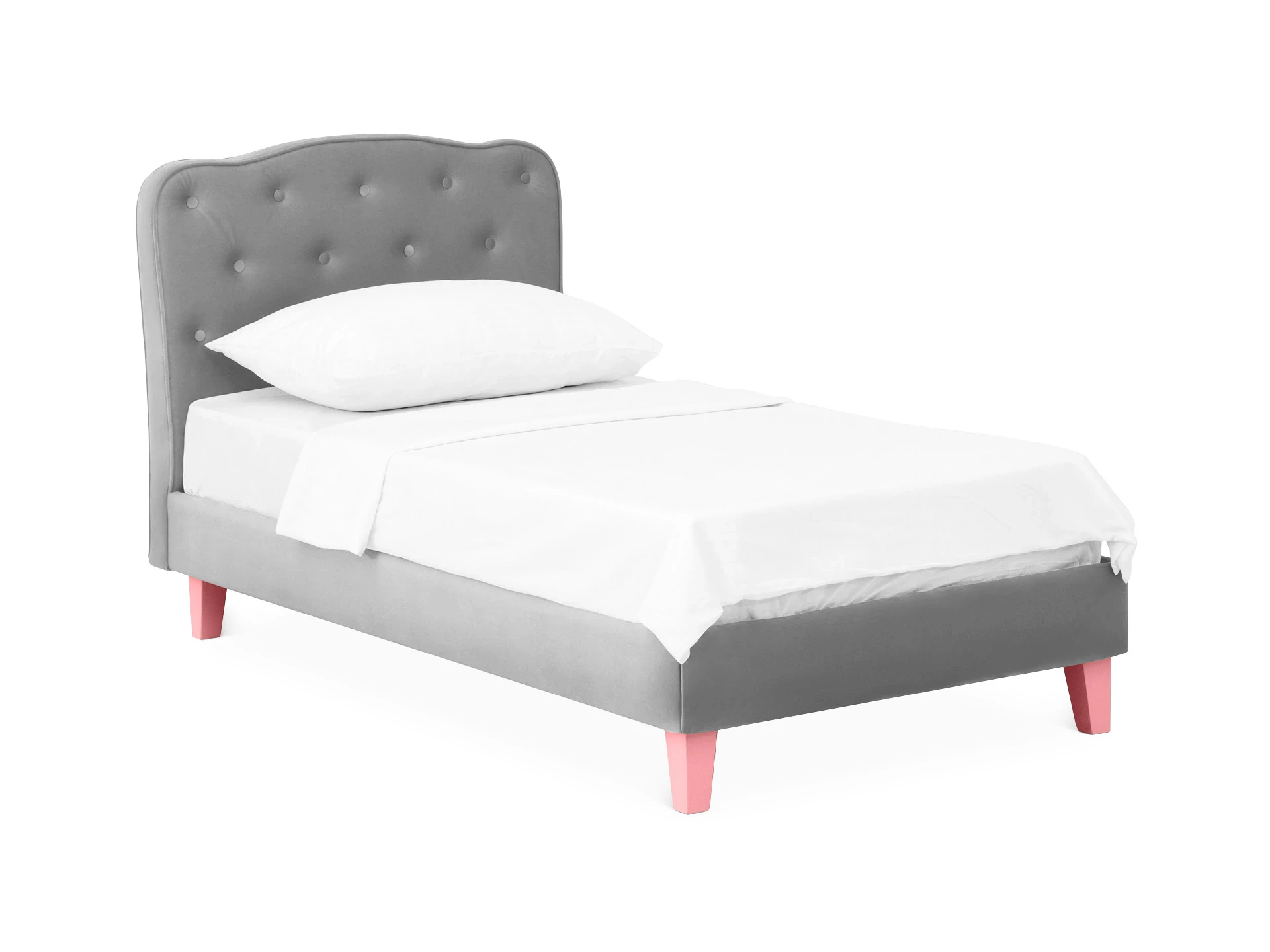 Линейка Candy — кровати для детей с высоким изголовьем и мягкими царгами. Изящное исполнение поможет воссоздать в интерьере картинку из сказки. Комната принцессы или спальня феи — Candy воплотит любую мечту! Воздушная и невесомая благодаря ножкам из массива дерева. Смотрится аккуратно и эстетично. Элегантное фигурное изголовье украшено текстильными пуговицами, напоминающими каретную стяжку «капитоне».
