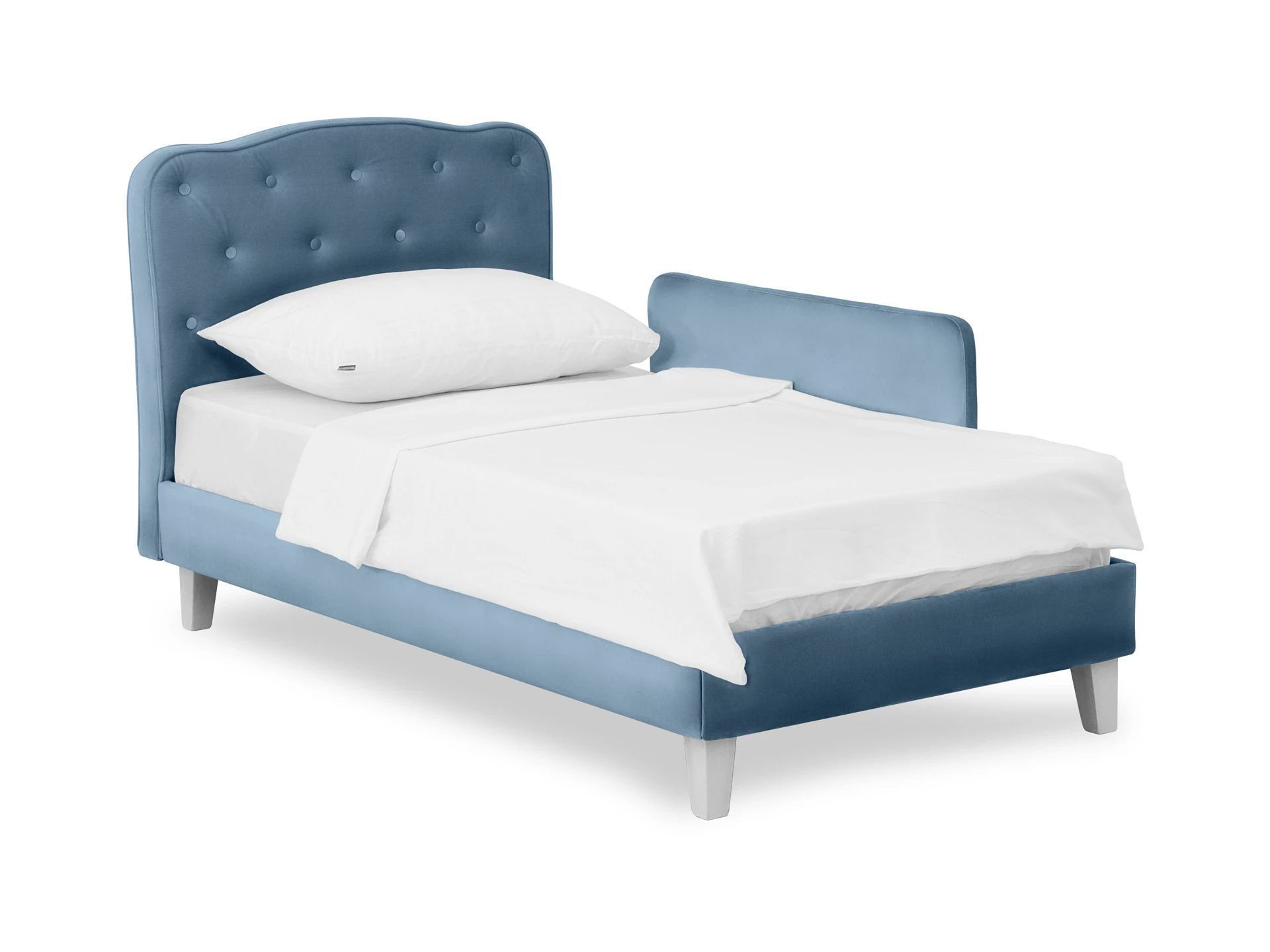 Линейка Candy — кровати для детей с высоким изголовьем и мягкими царгами. Изящное исполнение поможет воссоздать в интерьере картинку из сказки. Комната принцессы или спальня феи — Candy воплотит любую мечту! Воздушная и невесомая благодаря ножкам из массива дерева. Смотрится аккуратно и эстетично. Элегантное фигурное изголовье украшено текстильными пуговицами, напоминающими каретную стяжку «капитоне».