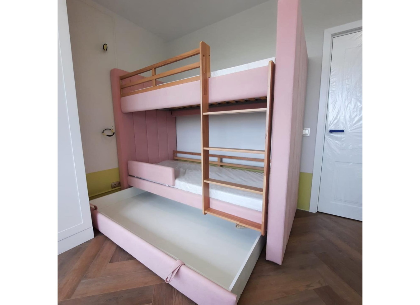 Мягкая уютная двухъярусная кровать Cosy может быть выполнена в различных цветах: бежевый, серый или розовый