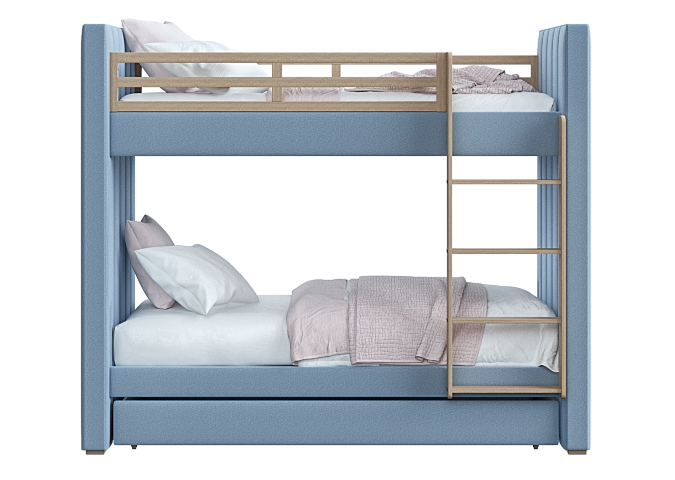 Мягкая уютная двухъярусная кровать Cosy может быть выполнена в различных цветах: бежевый, серый, розовый или голубой.