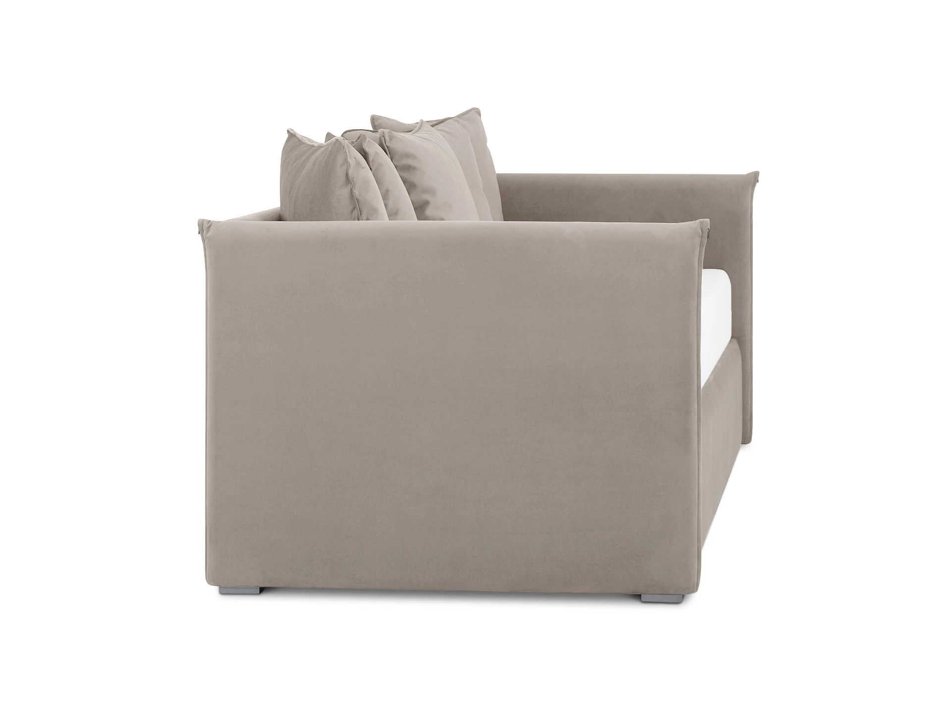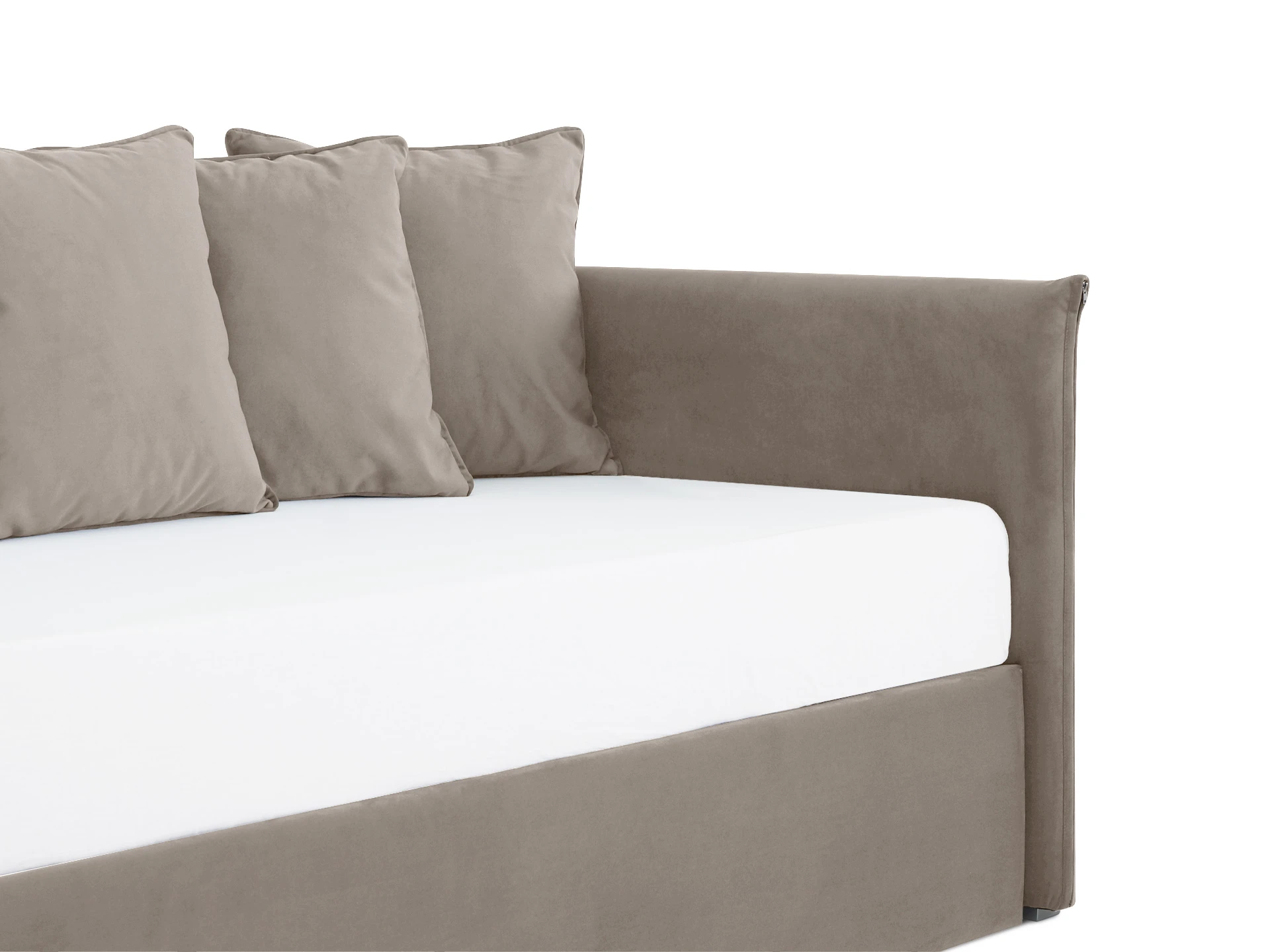 Серия Milano — функциональные кровати-кушетки с мягкими царгами. Идеальный вариант для детской или в качестве гостевого спального места. Днем может выполнять роль уютного диванчика, а ночью — комфортной кровати. Кушетка разработана с учетом регулярного сна и формирования правильной осанки. Отличная поддержка спины, равномерное распределение нагрузки. Также можно дополнить ортопедическим матрасом средней жесткости с блоком независимых пружин и натуральной кокосовой койрой, любым количеством подушек, выкатным ящиком, который можно использовать для хранения белья и в качестве ещё одного спального места. Лаконичный стиль модели подойдет для любого пространства. Персонализируйте Milano, выбирая нужный вам материал и цвет обивки.