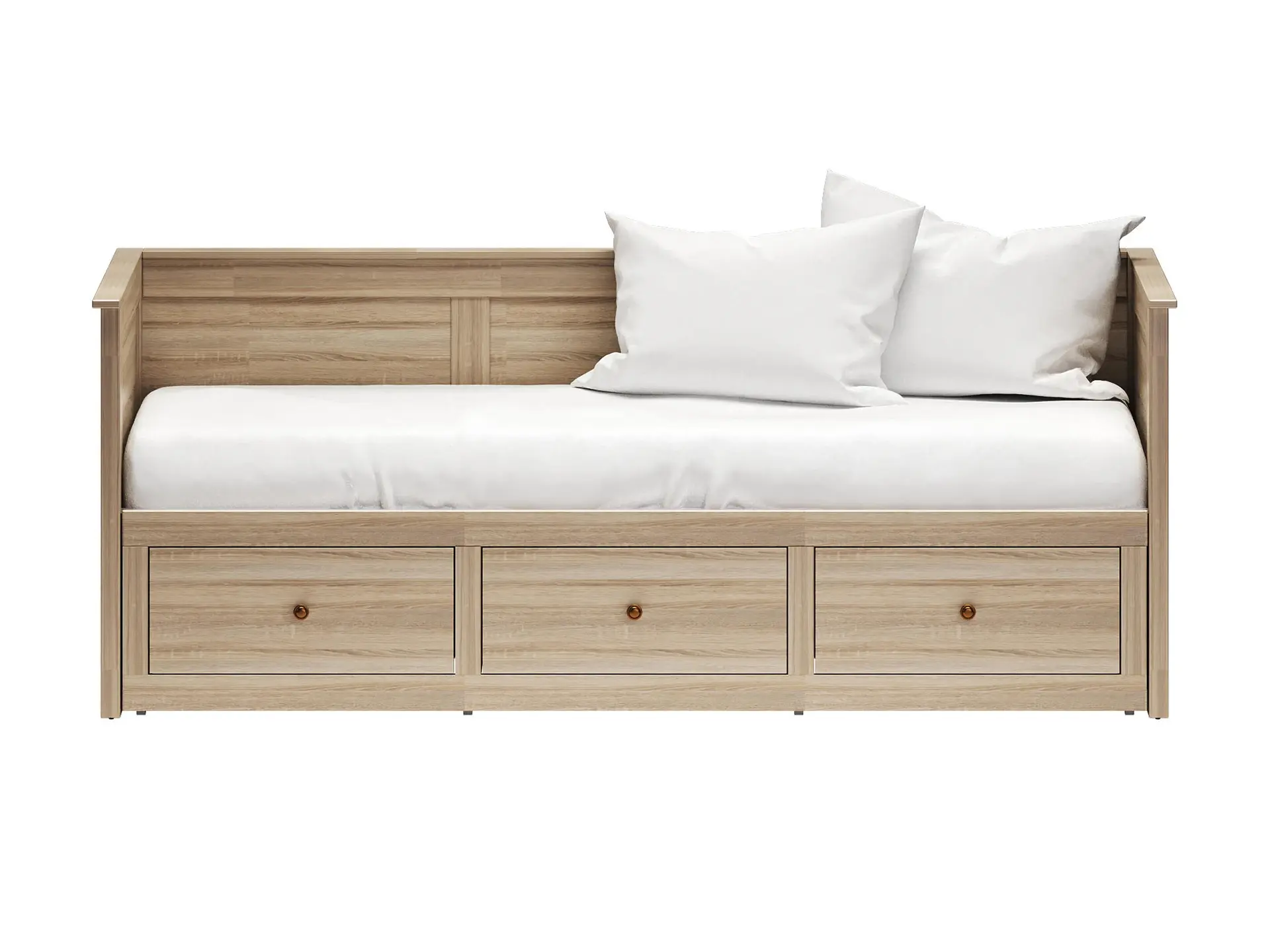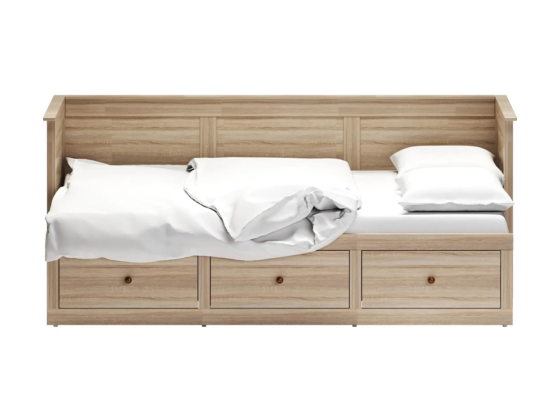 В задвинутом виде кушетка используется как односпальная кровать, в раздвинутом - как двухспальная. Выдвижная часть оснащенна тремя ящиками для хранения вещей. При использовании кровати-кушетки Reina в качестве раскладной двухспальной кровати рекомендуется применять специальный складной матрас. Размер спального места - в сложенном виде 2000х800 мм, в разложенном 2000х1590 мм. Высота спального места без матраса 388 мм.