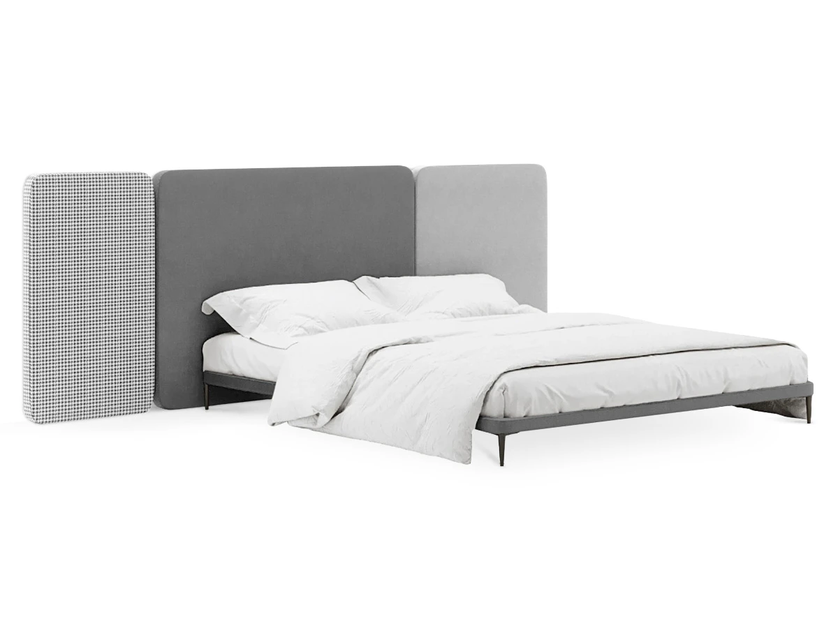 Кровать можно персонализировать при помощи навесных панелей 5 конфигураций. Имеют разную ширину и выполняются в любых цветовых сочетаниях. Крепятся к стене с помощью металлических навесов с регулировкой по высоте. Панели комбинируются по-разному и адаптируются к спальням любых размеров. Можно оформить как традиционное высокое изголовье, так и большой «мягкий уголок». Который сделает вашу территорию идеального сна уютнее, теплее, а также подарит чувство защищенности и расслабления. Кровать Licata органично впишется в пространства разной стилистики от современной классики до минимализма и поможет вам максимально насладиться домашним комфортом.