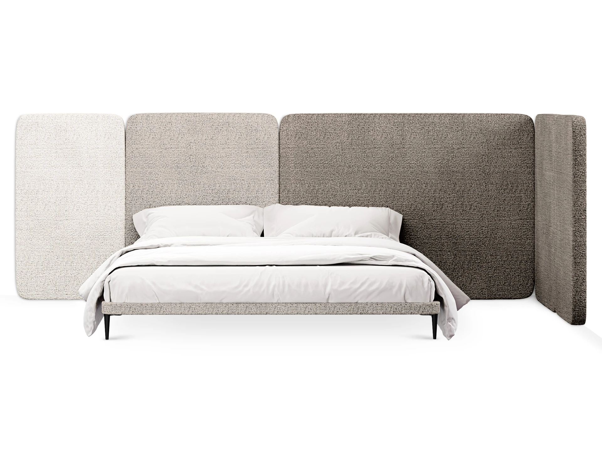 Кровать можно персонализировать при помощи навесных панелей 5 конфигураций. Имеют разную ширину и выполняются в любых цветовых сочетаниях. Крепятся к стене с помощью металлических навесов с регулировкой по высоте. Панели комбинируются по-разному и адаптируются к спальням любых размеров. Можно оформить как традиционное высокое изголовье, так и большой «мягкий уголок». Который сделает вашу территорию идеального сна уютнее, теплее, а также подарит чувство защищенности и расслабления. Кровать Licata органично впишется в пространства разной стилистики от современной классики до минимализма и поможет вам максимально насладиться домашним комфортом.