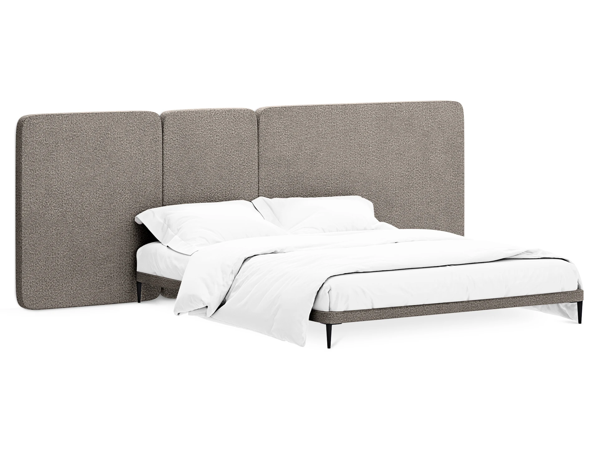 Кровать можно персонализировать при помощи навесных панелей 5 конфигураций. Имеют разную ширину и выполняются в любых цветовых сочетаниях. Крепятся к стене с помощью металлических навесов с регулировкой по высоте. Панели комбинируются по-разному и адаптируются к спальням любых размеров. Можно оформить как традиционное высокое изголовье, так и большой «мягкий уголок». Который сделает вашу территорию идеального сна уютнее, теплее, а также подарит чувство защищенности и расслабления. Кровать Licata органично впишется в пространства разной стилистики от современной классики до минимализма и поможет вам максимально насладиться домашним комфортом.