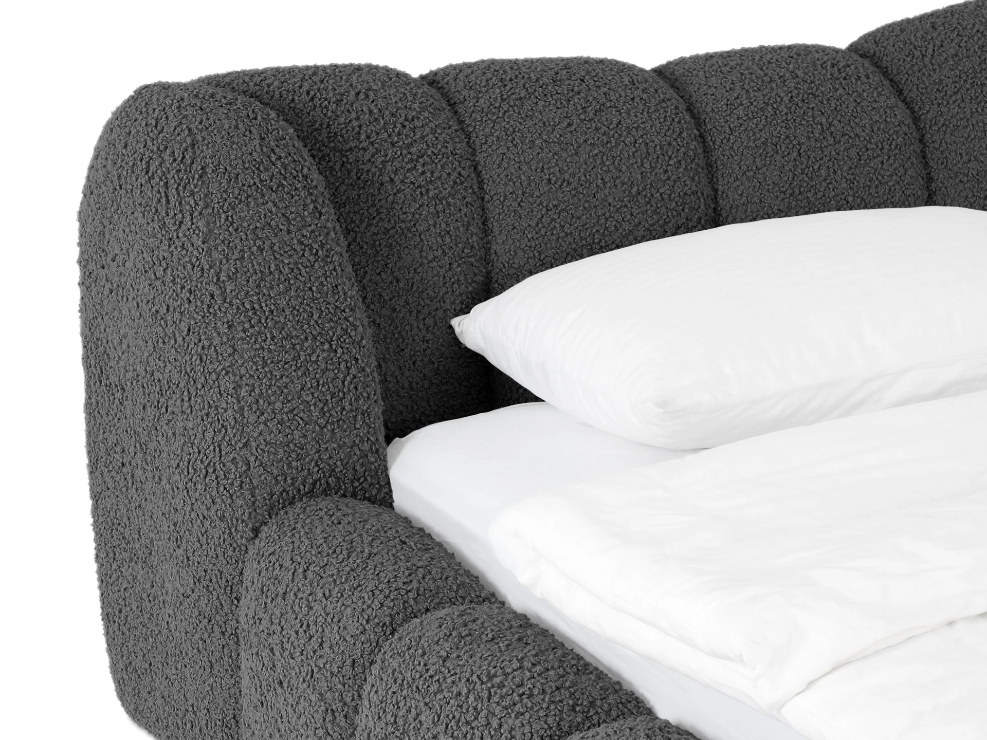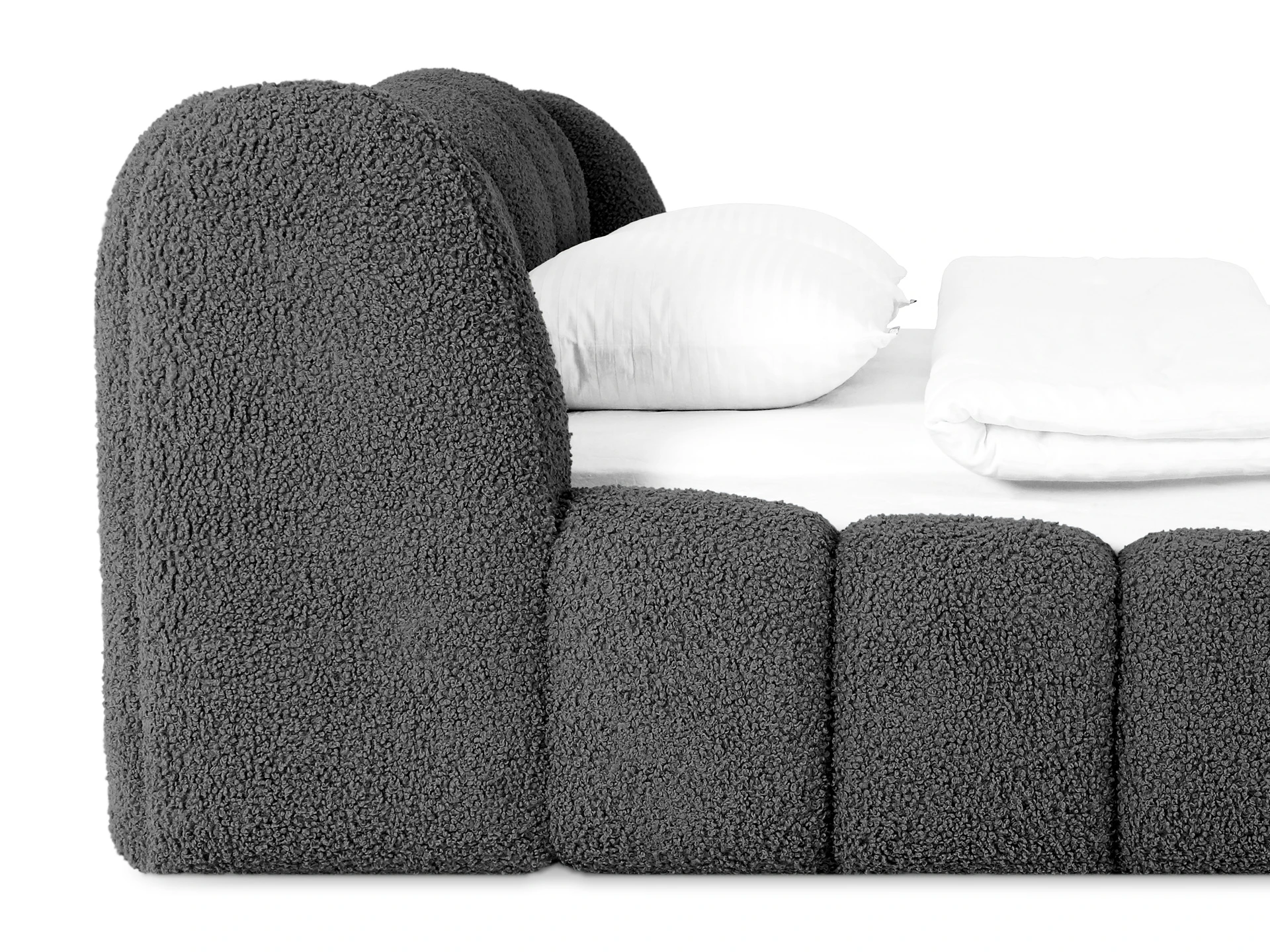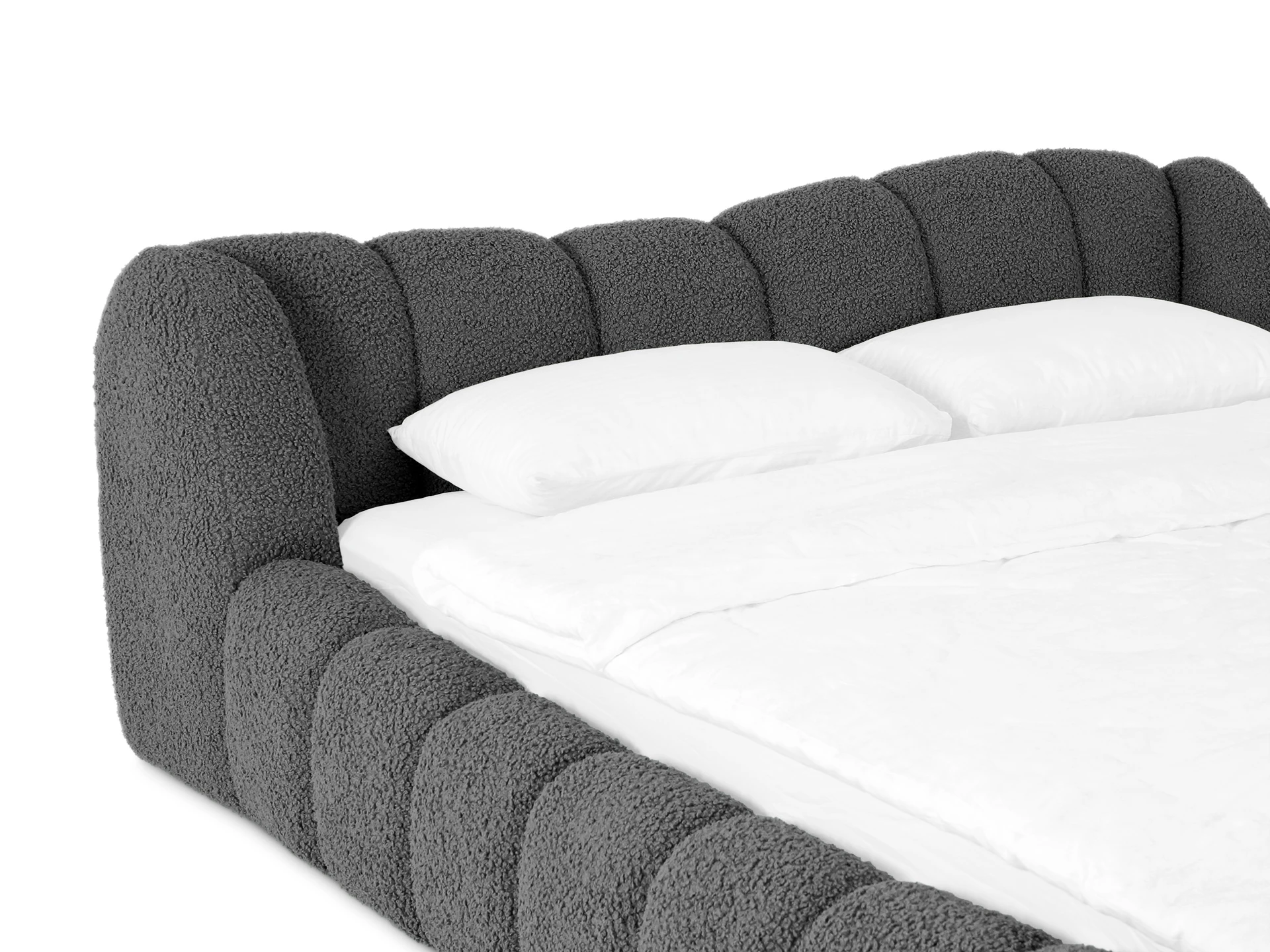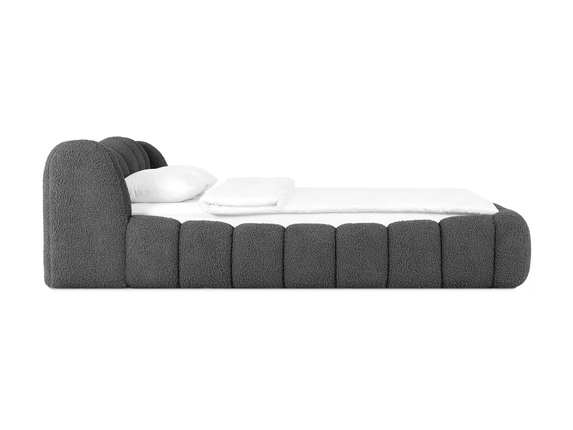 Litta — кровать, которую вам не захочется покидать! Создана для максимального расслабления. Визуально напоминает нежный круассан своими пышными пропорциями и мягкими линиями. Она будет баловать ваше тело и радовать глаз. Эстетика повышенного комфорта в объемных тактильных царгах и уютном изголовье. Которое состоит из восьми модулей. Вид спинки имитирует декоративную утяжку. Что добавит фактурности и многослойности в интерьер.